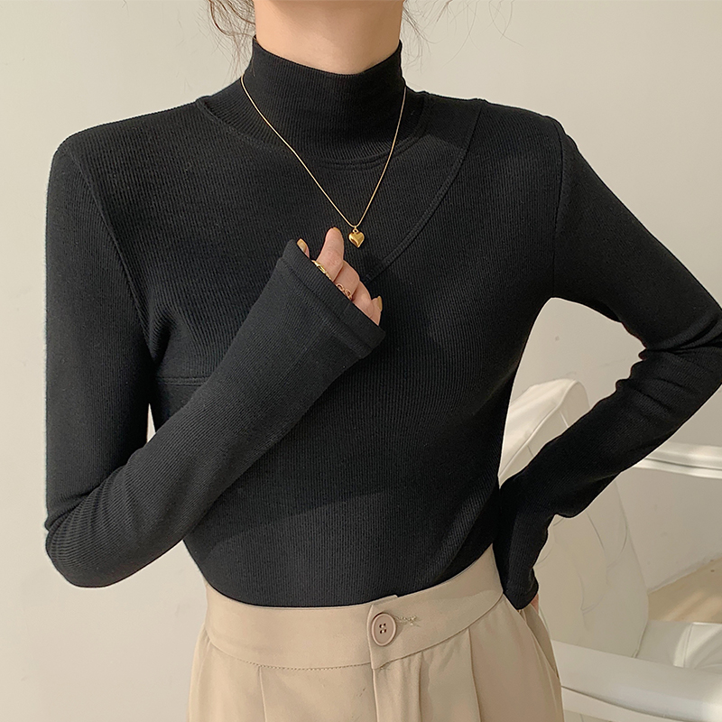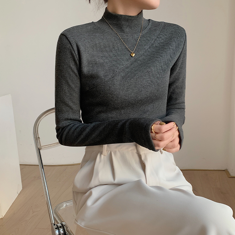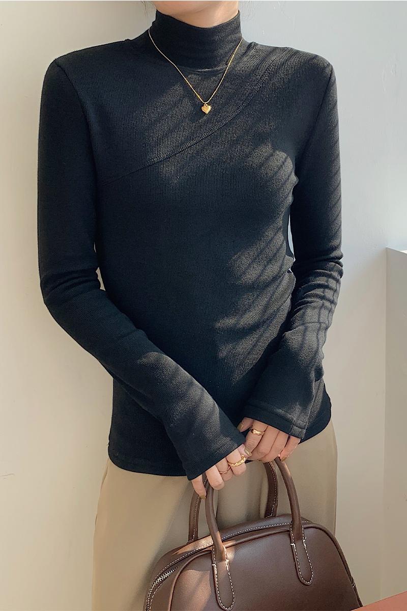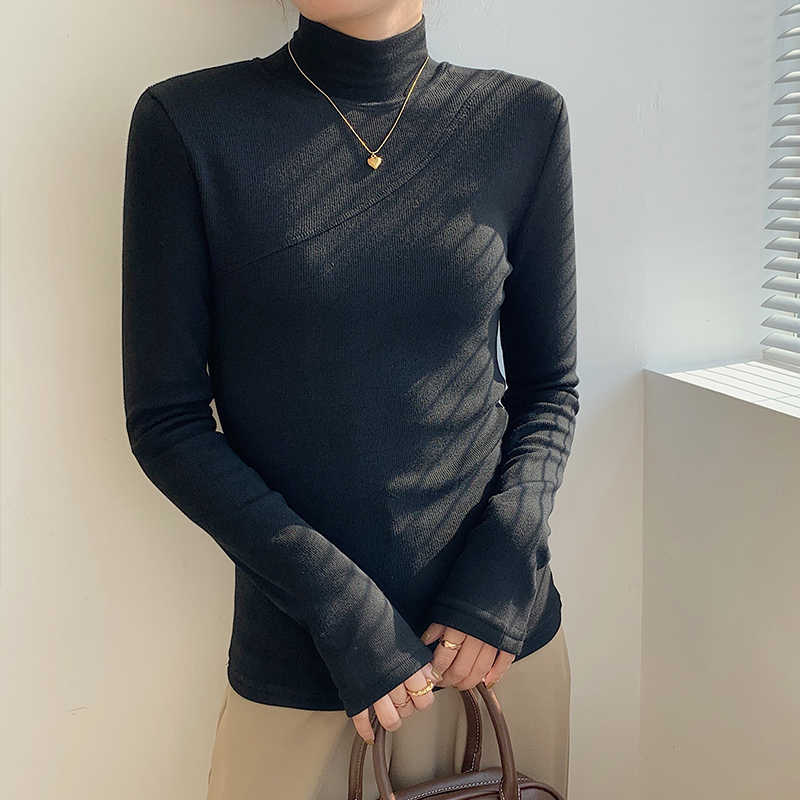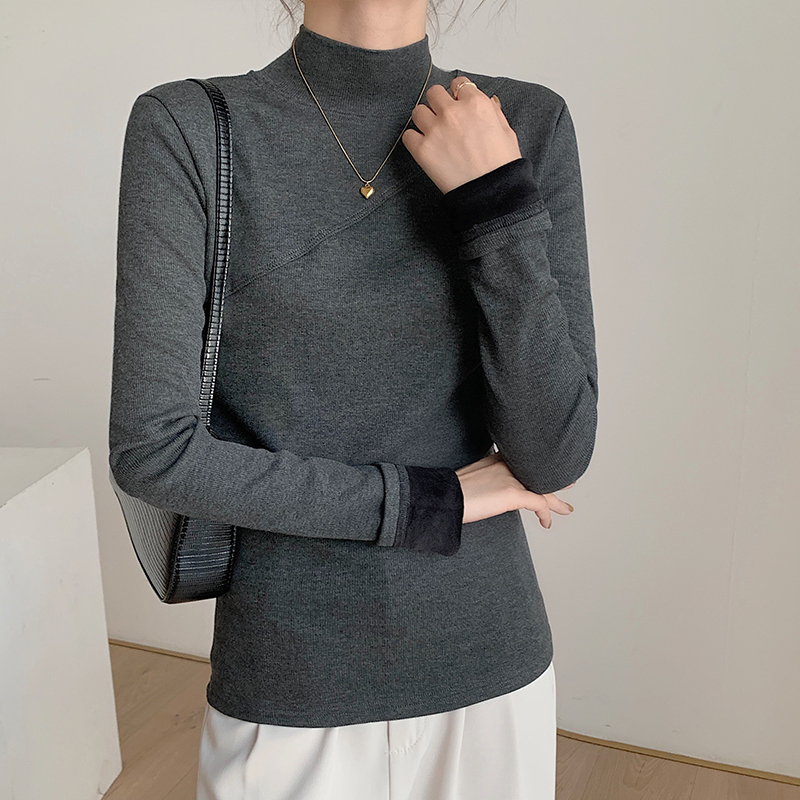 실제 가격#반 터틀넥 플러스 벨벳 두꺼운베이스 셔츠 새로운 슬림 바디 드레싱 긴팔 티셔츠