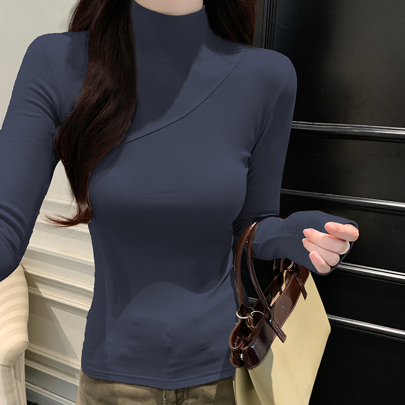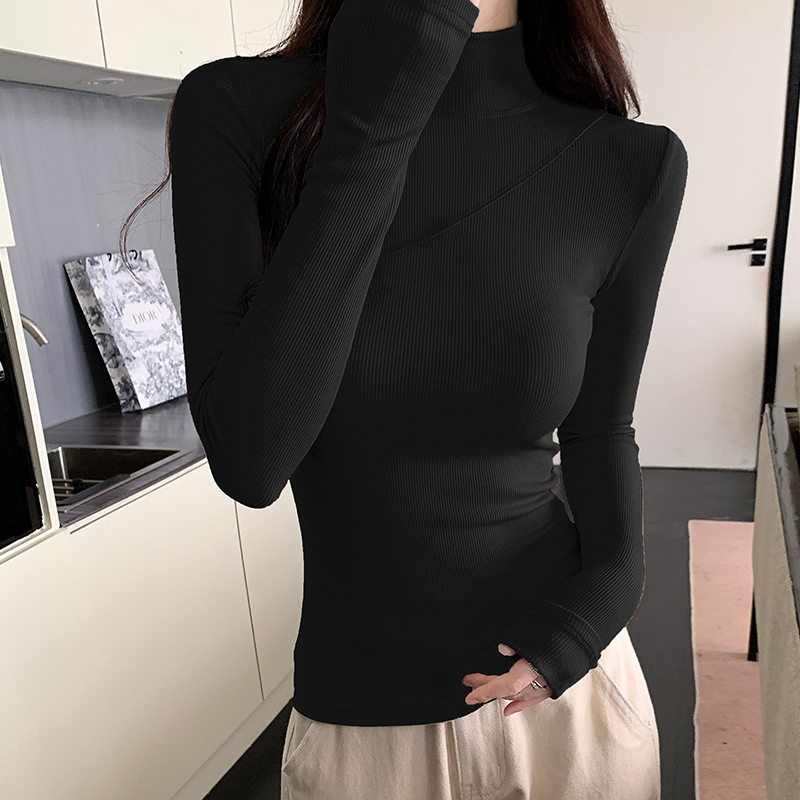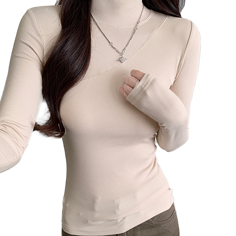 New Women 's Autumn and Winter Half-High High 니트 하이 탄성 다목적베이스 셔츠 세련된 꽉 긴 소매