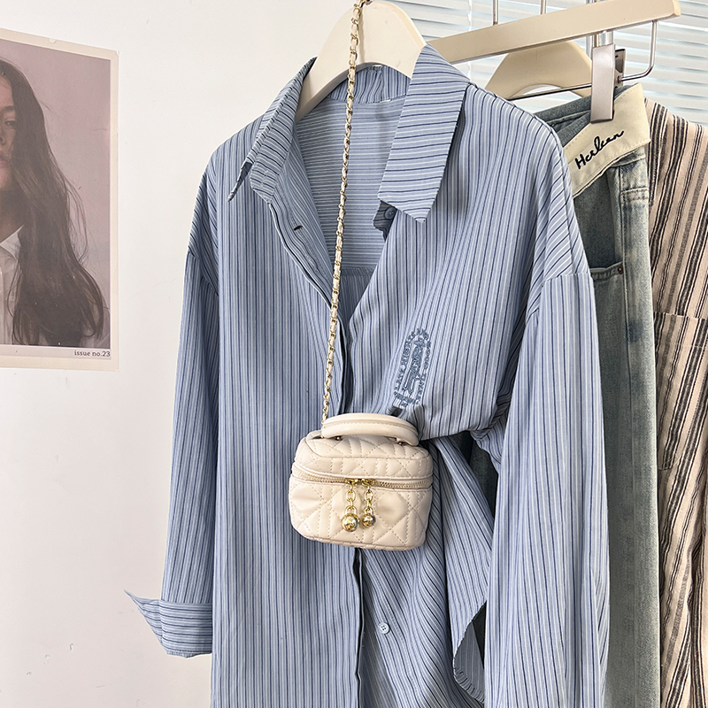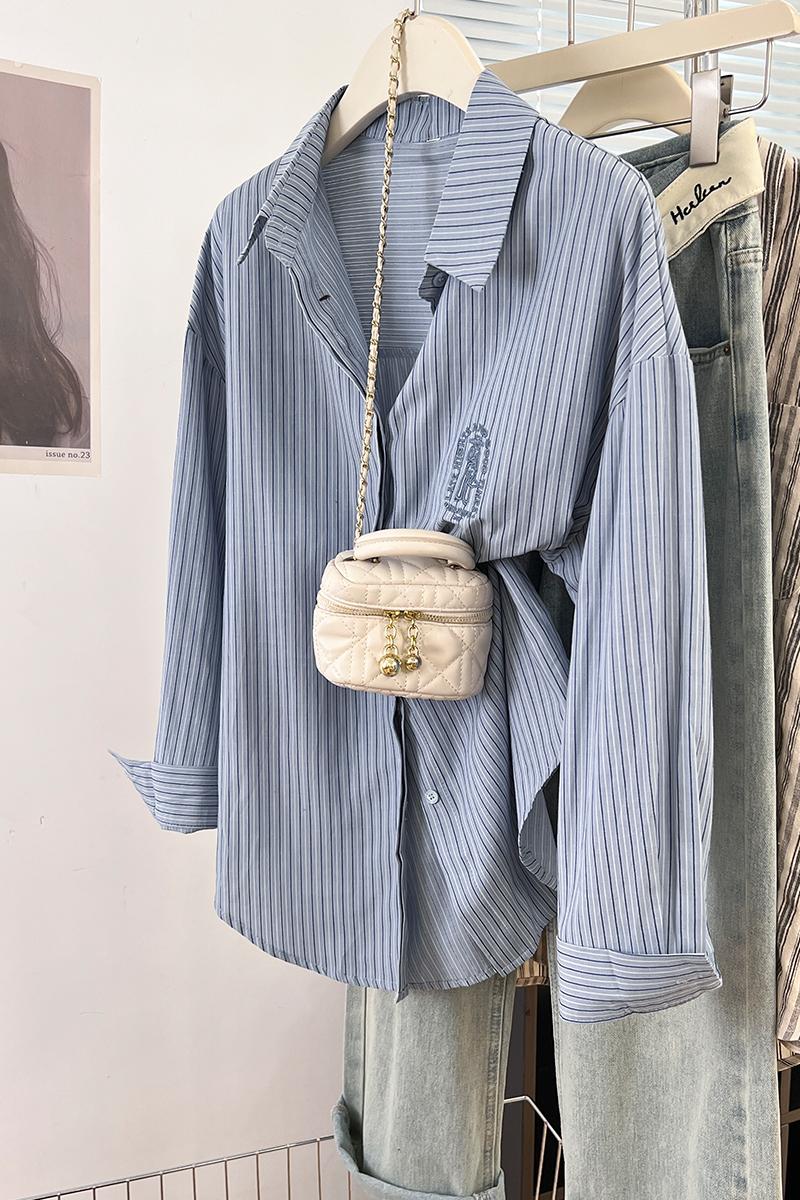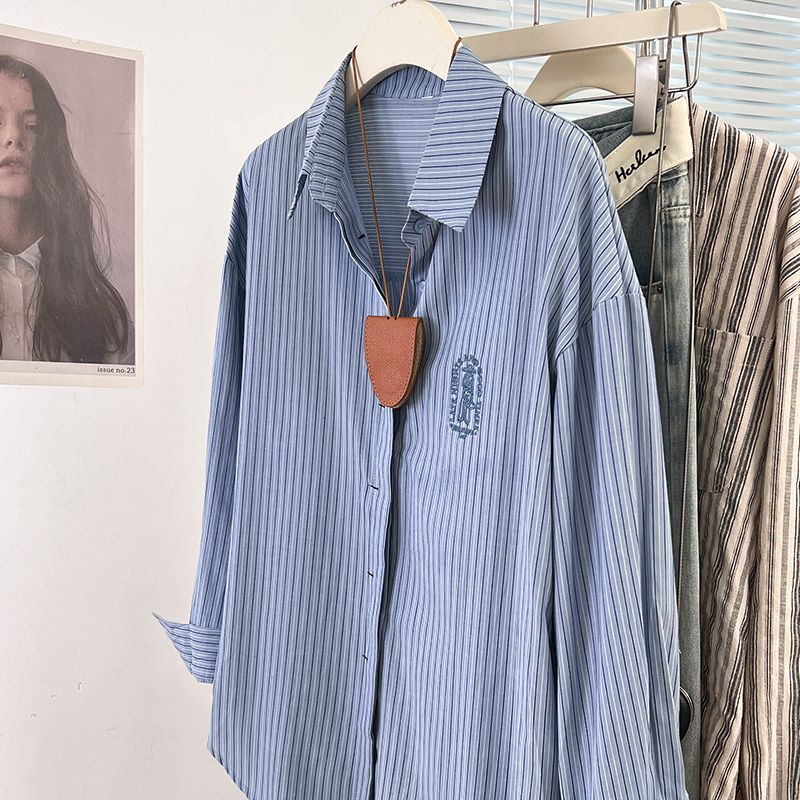 Real-Price Real Shot #striped Blue Embroidered Shirt Jacket in Spring and Autumn Layered Shirt 캐주얼 느슨한 긴 소매 탑