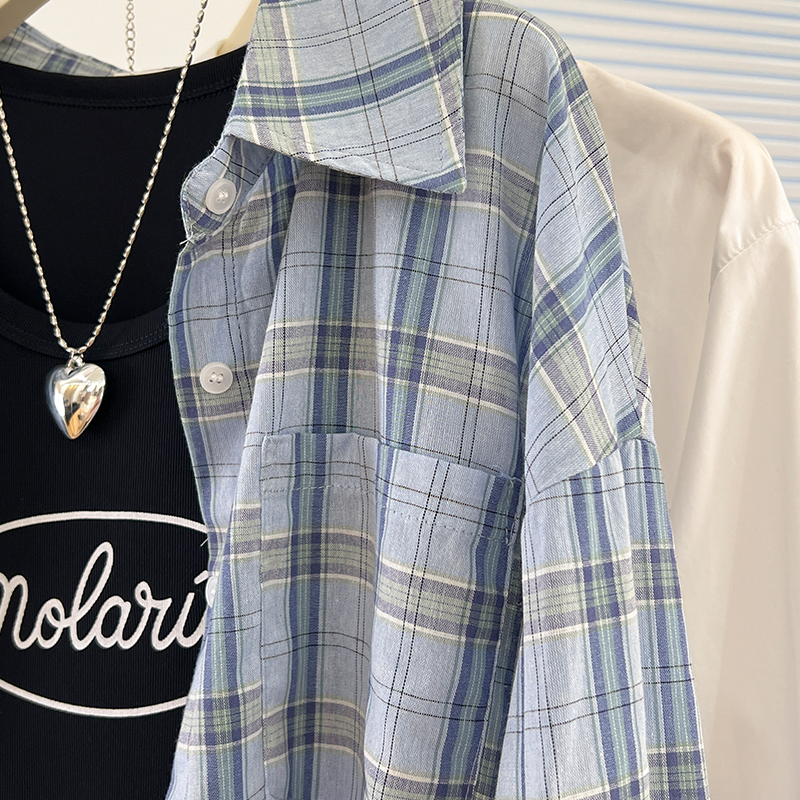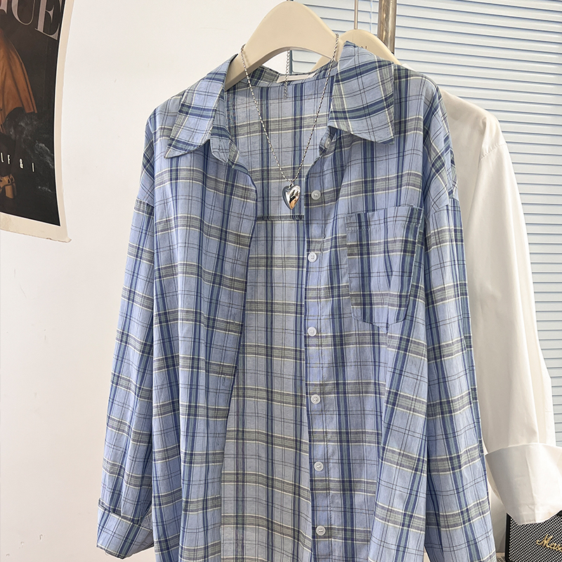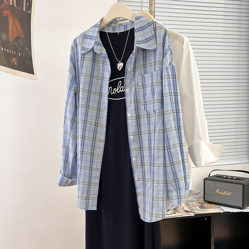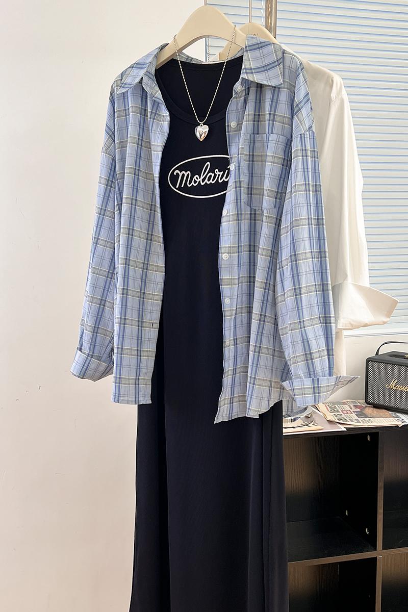 Real Price Real Shot #Blue 스트라이프 셔츠 재킷 여자 봄과 가을 셔츠 조끼 긴 치마 상단 2 피스 세트