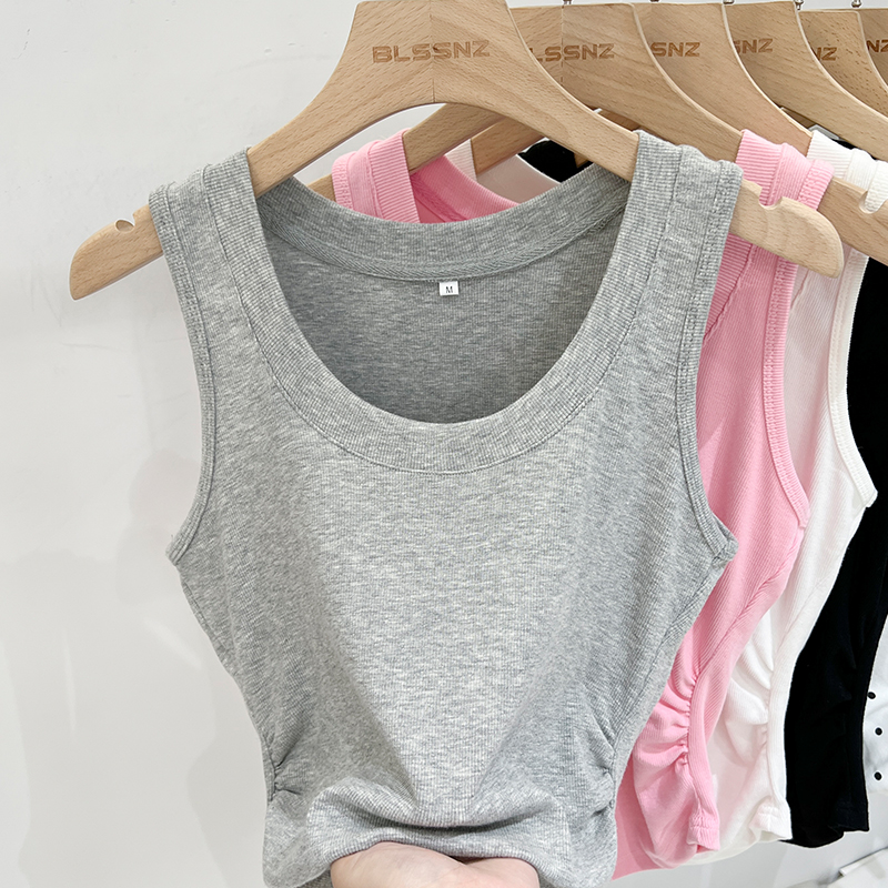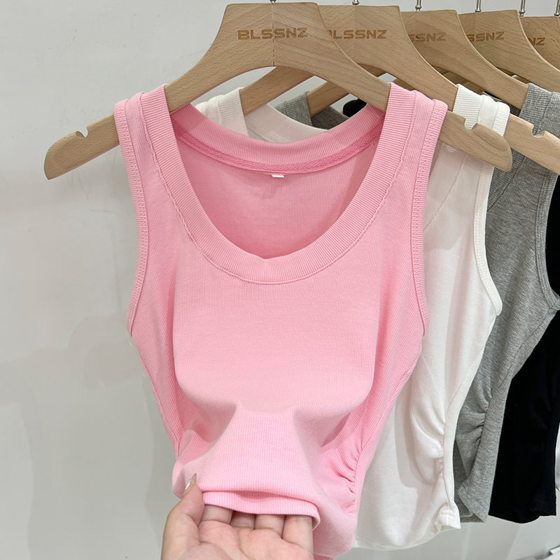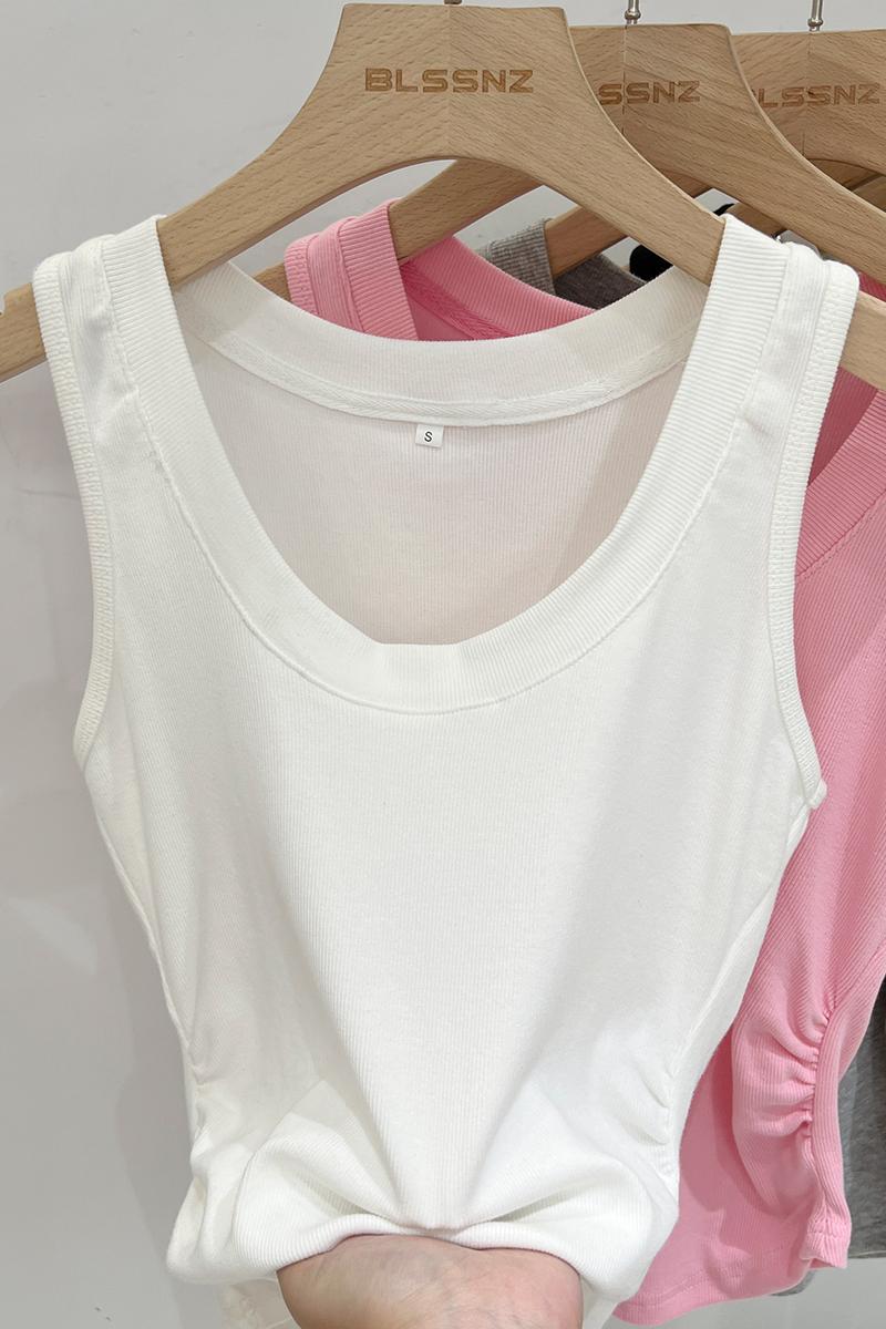 진짜 가격 실제 샷 #화이트면 U- 넥 서스펜더 조끼 내부 바닥을 가진 여성을위한 여름 여름 주름 허리 상단 외부
