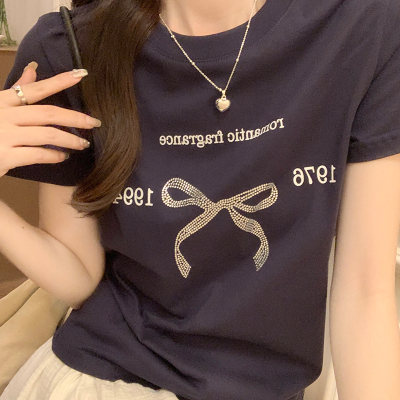 White Bow Pure Cotton Shoulder Short-Sleeved 티셔츠 여자 여름 티셔츠 Top New