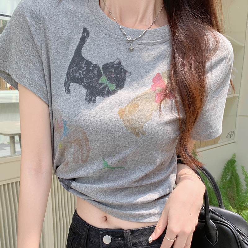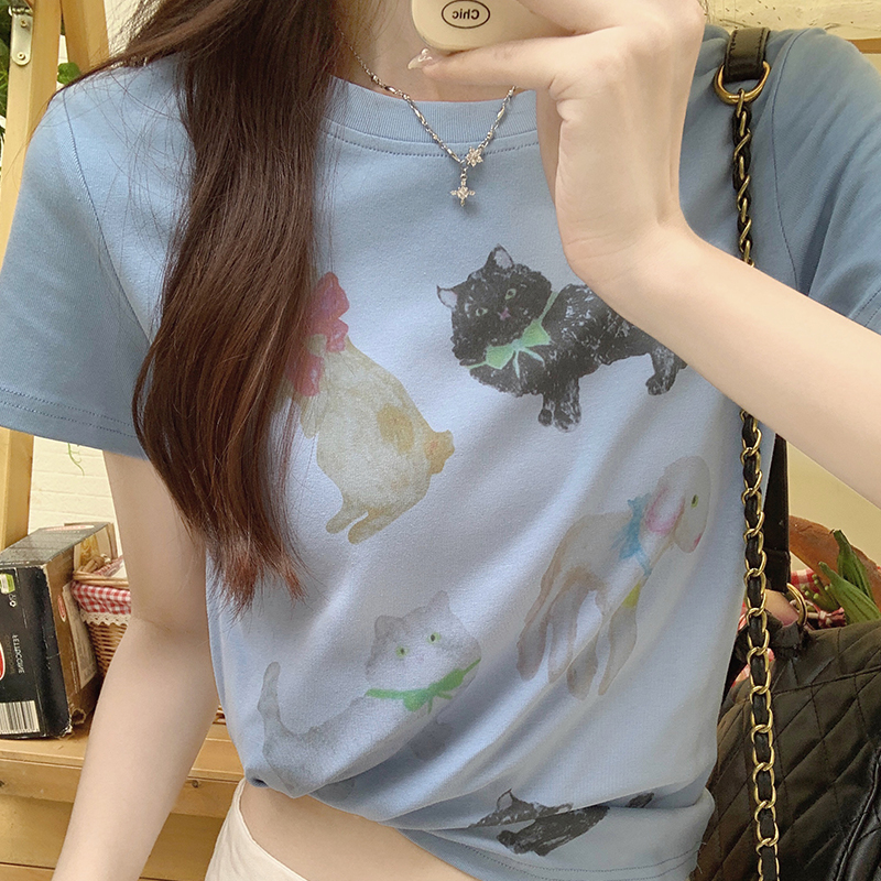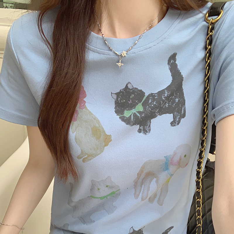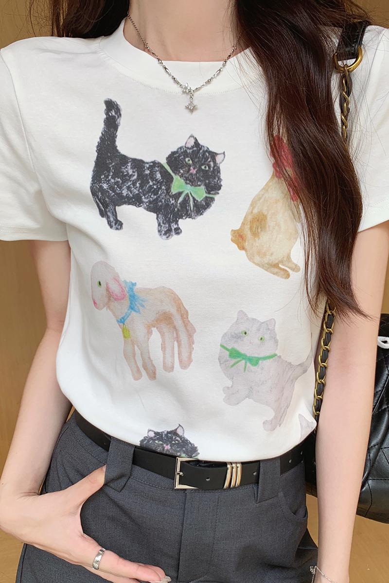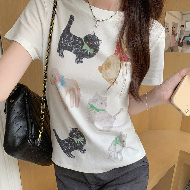 화이트 만화 동물 순수 면화 어깨 짧은 슬리프 티셔츠 여름에 여성을위한 새로운 티셔츠 탑