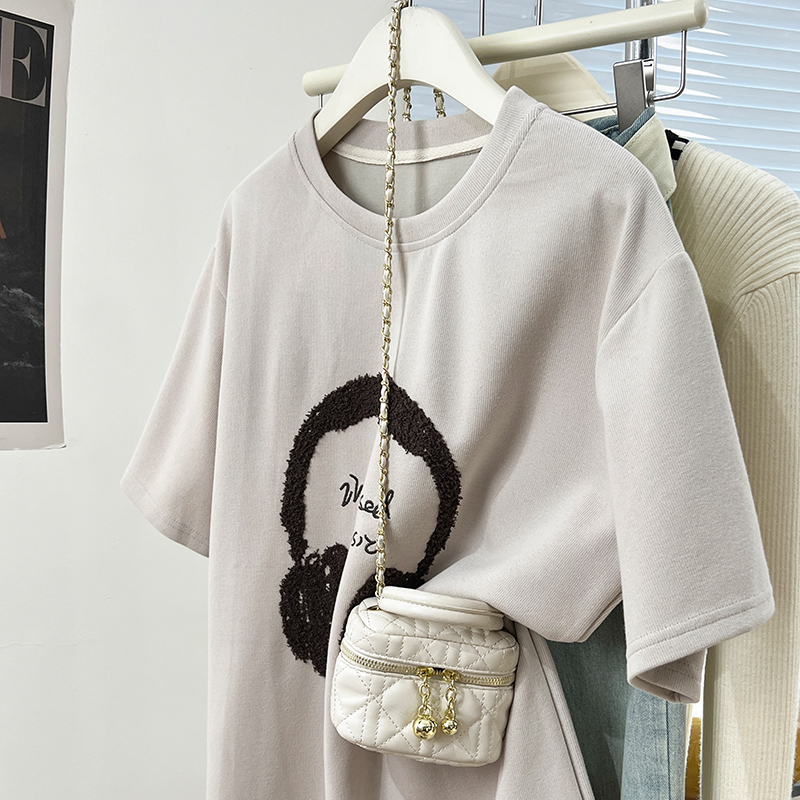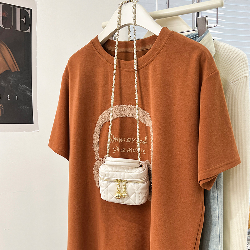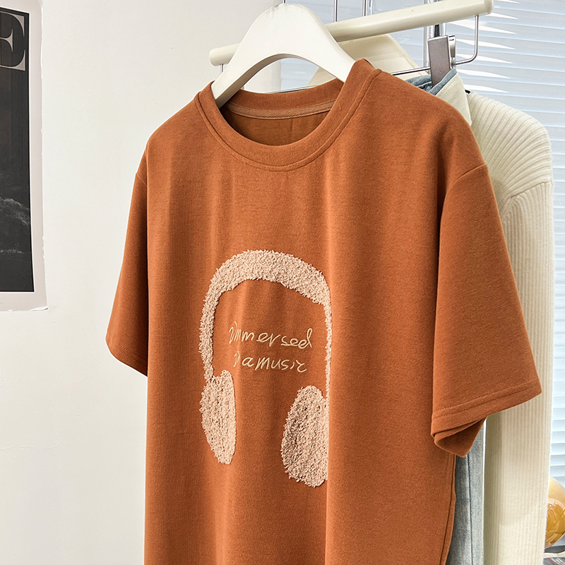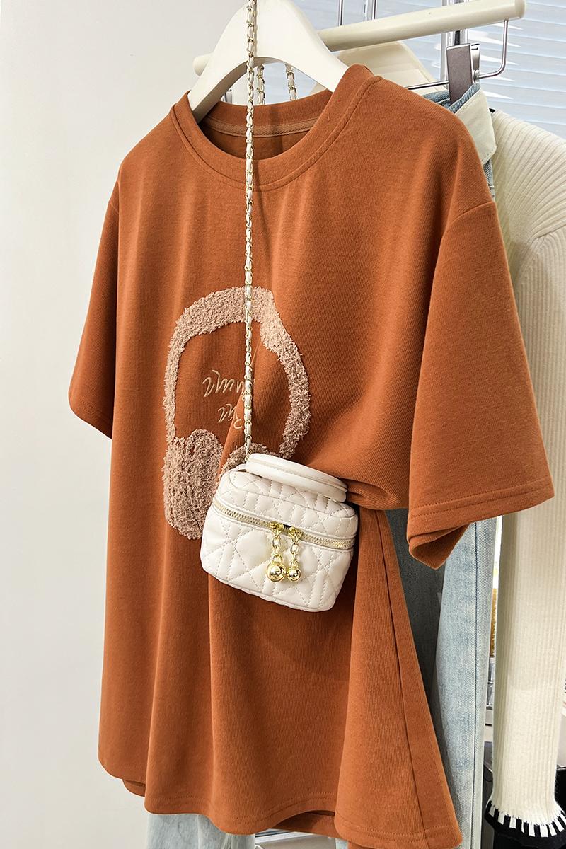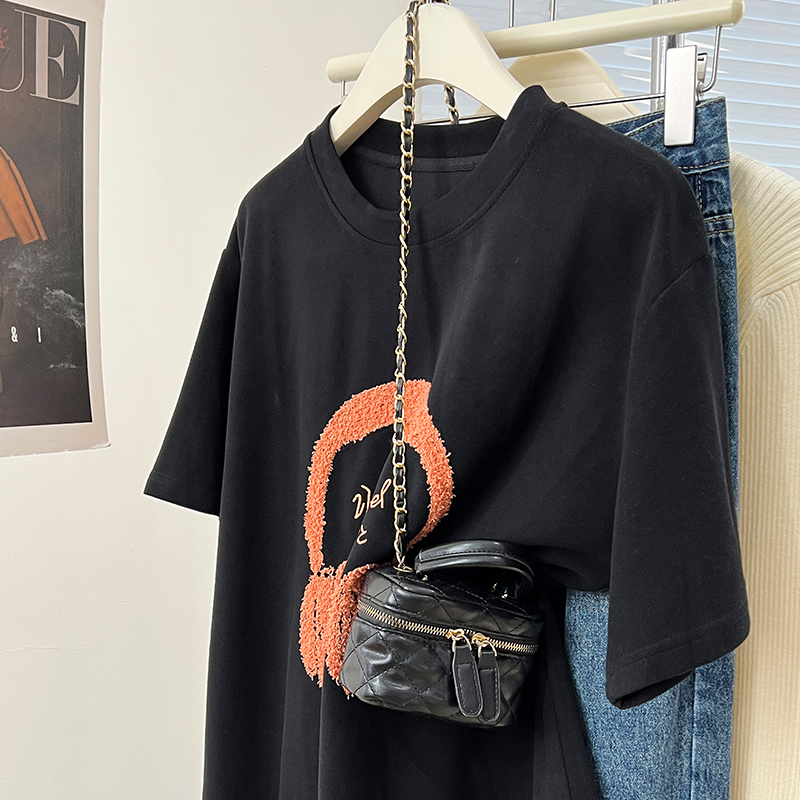Real-Price Real Shot #American Retro 자수 전면 어깨 어깨 단축 티셔츠 봄과 여름 및 여름베이스 셔츠 티셔츠 느슨한 탑