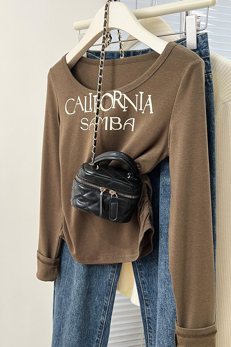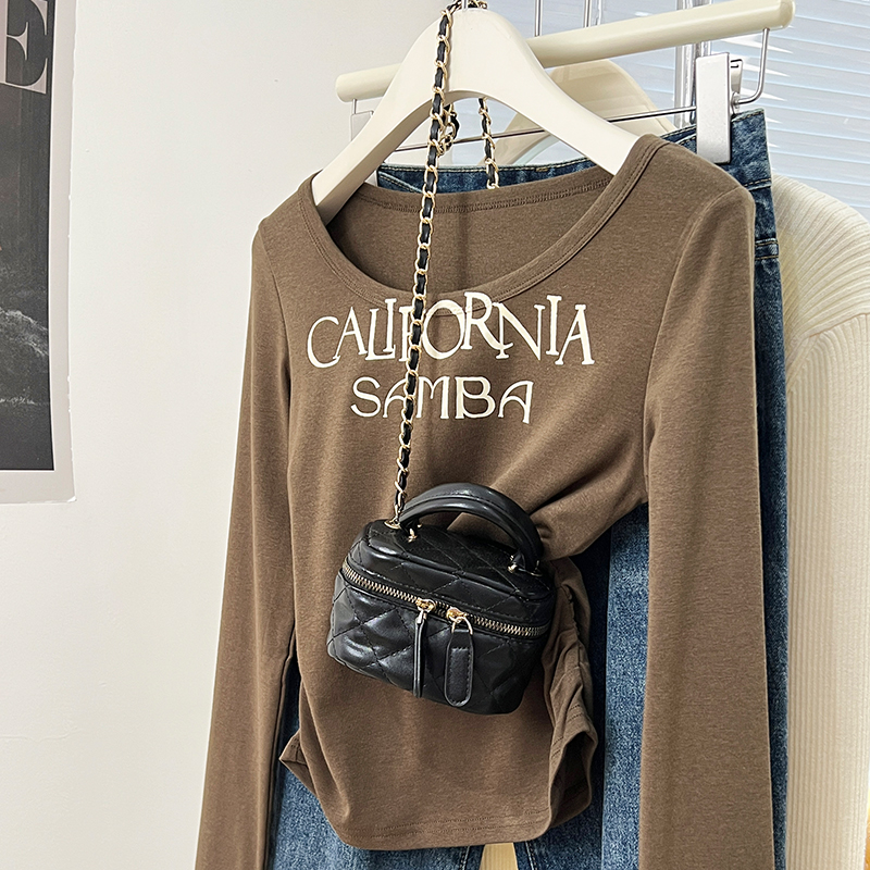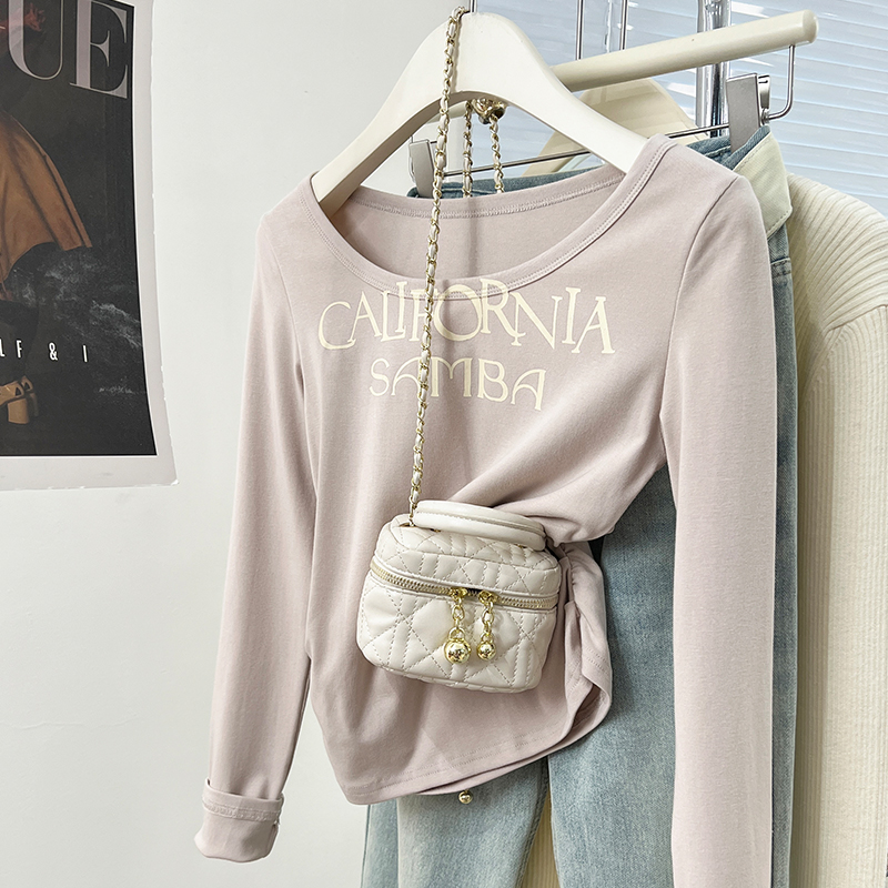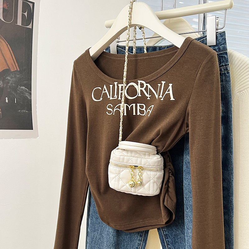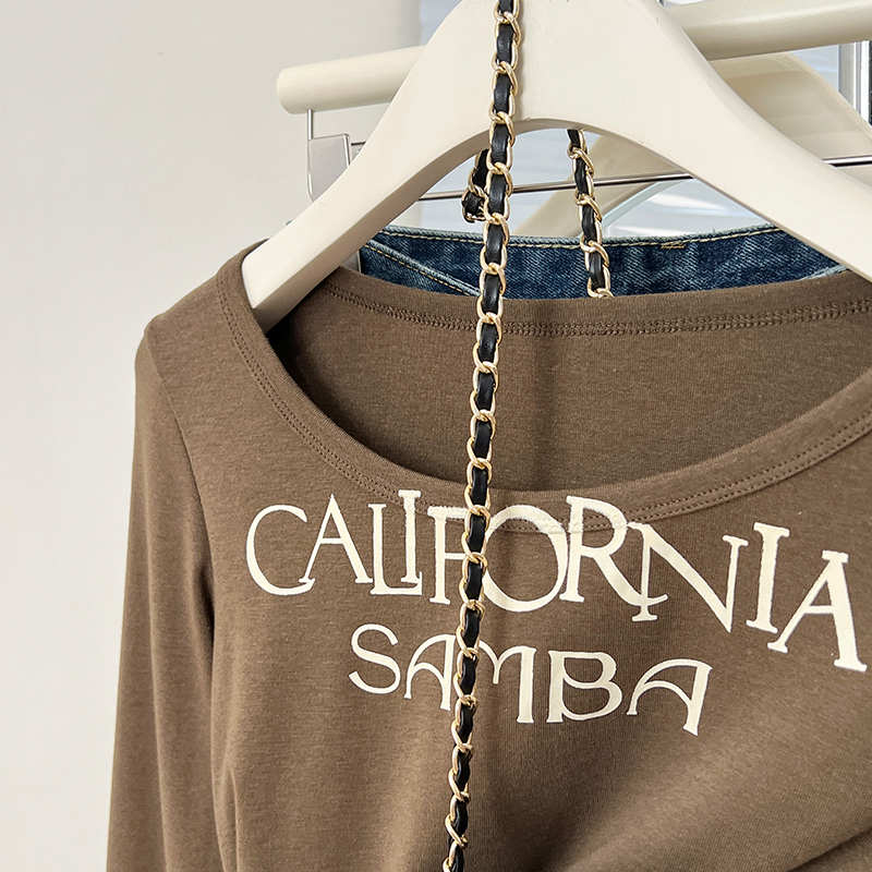 Real-Price Real-Life Shot #American Retro Short Irregular U-Neck Women 's Spring Design Base Shirt Top을위한 긴팔 티셔츠