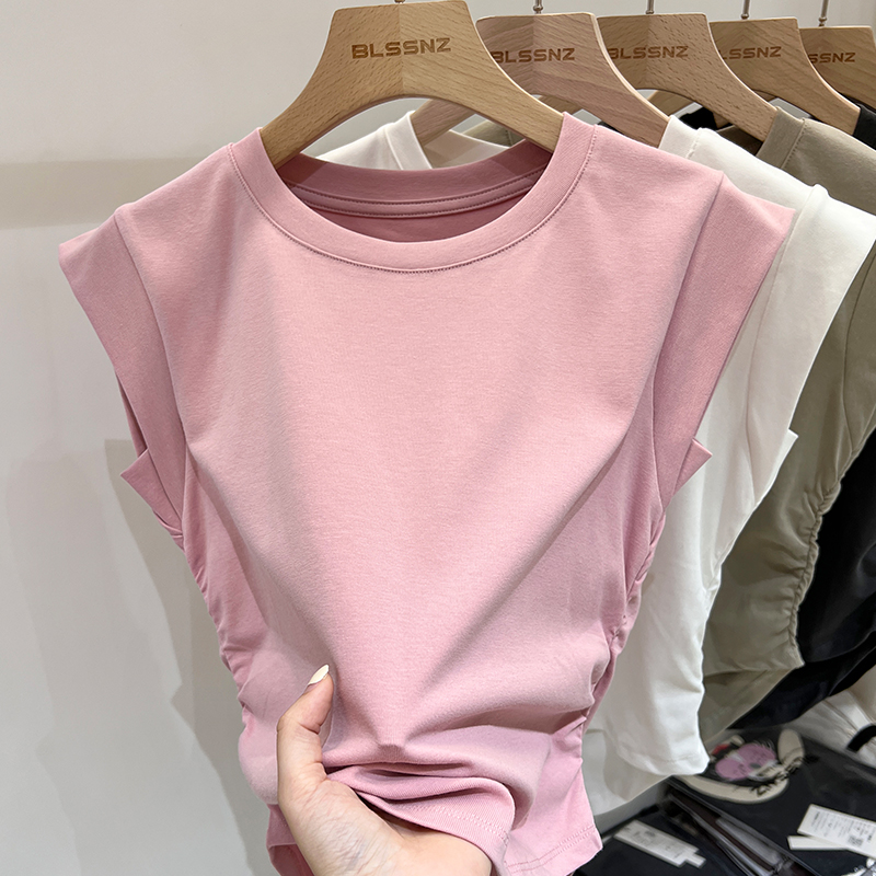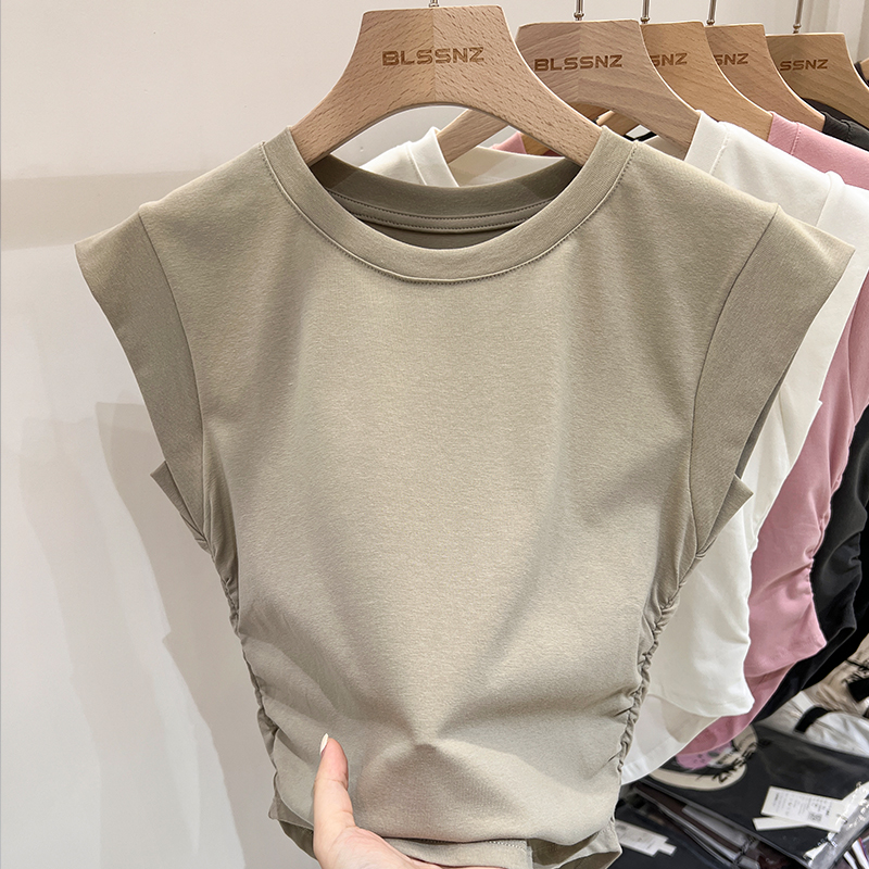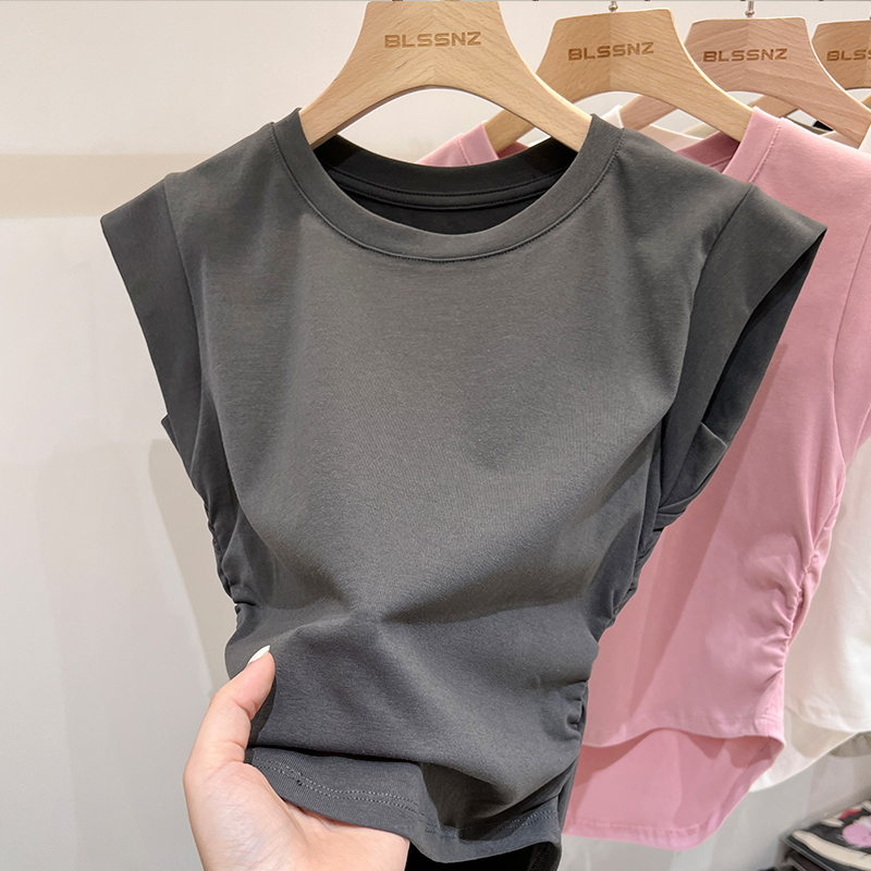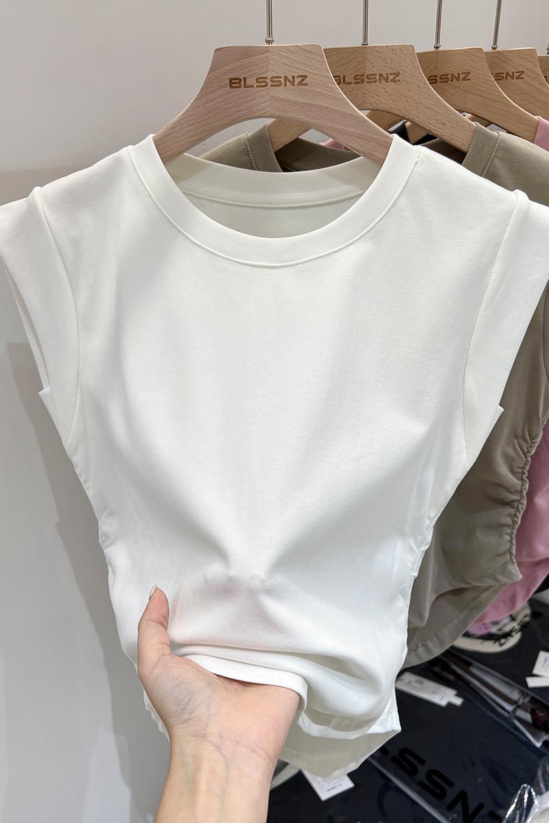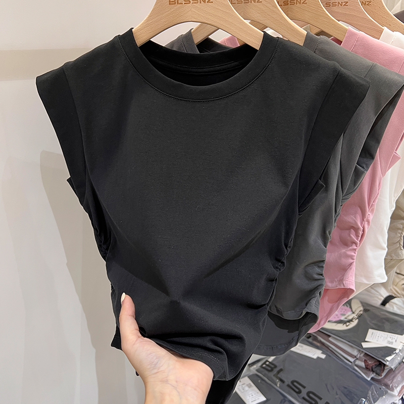 Real Price Real Shot #American Pure Cotton Front Shoulder Siteveless 티셔츠 여성 단점 여름 디자인 조끼 작은 비행 소매 상단