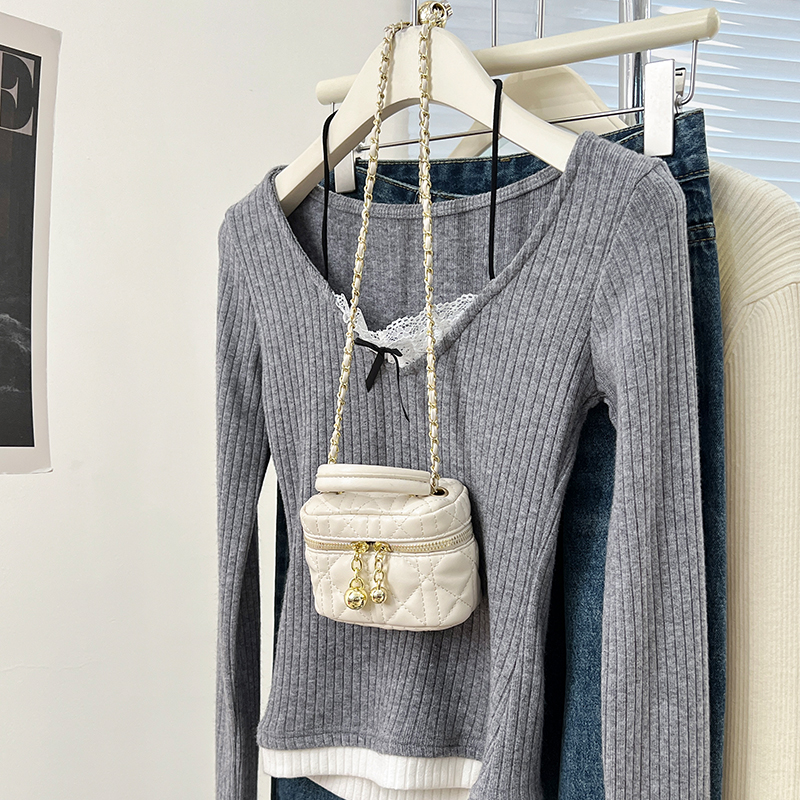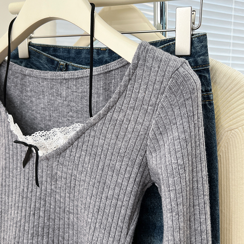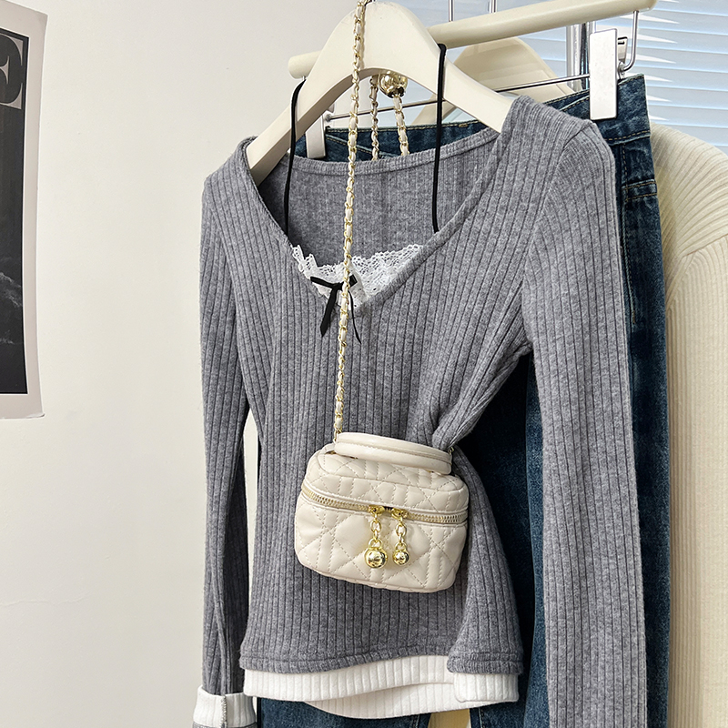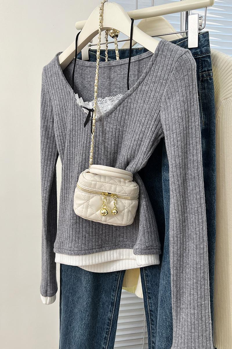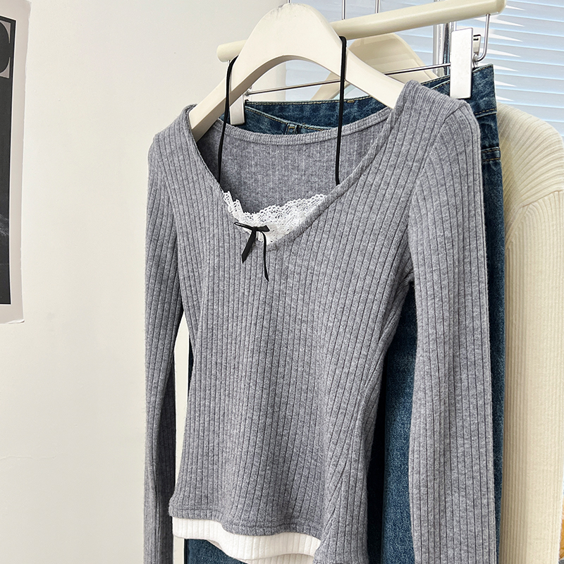 Real Price Real Shot #fake 2 피스 달콤한 티셔츠 봄 순수 레이스베이스 셔츠 여성을위한 여성을위한 긴팔 탑