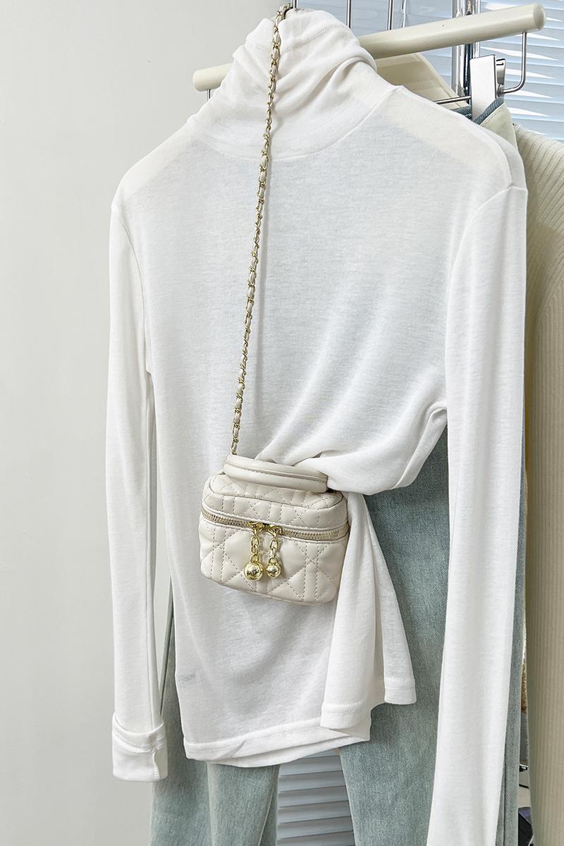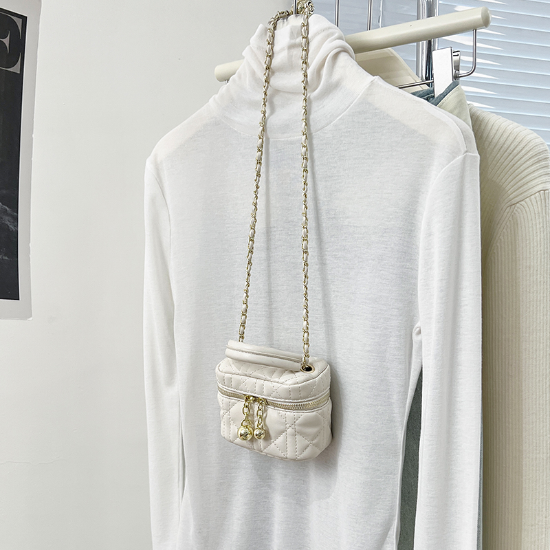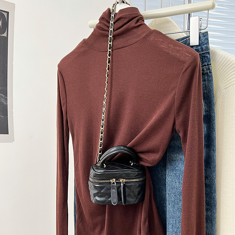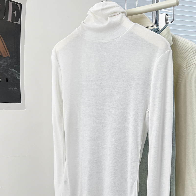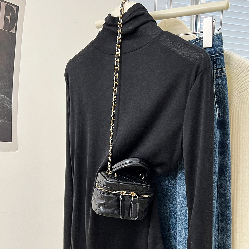 실제 가격 실제 샷 #Duoduo Collar Turtleneck 봄과 가을 탑을 가진 여성을위한 기본 셔츠 약간 투명한 얇은 검은 색 긴팔 티셔츠