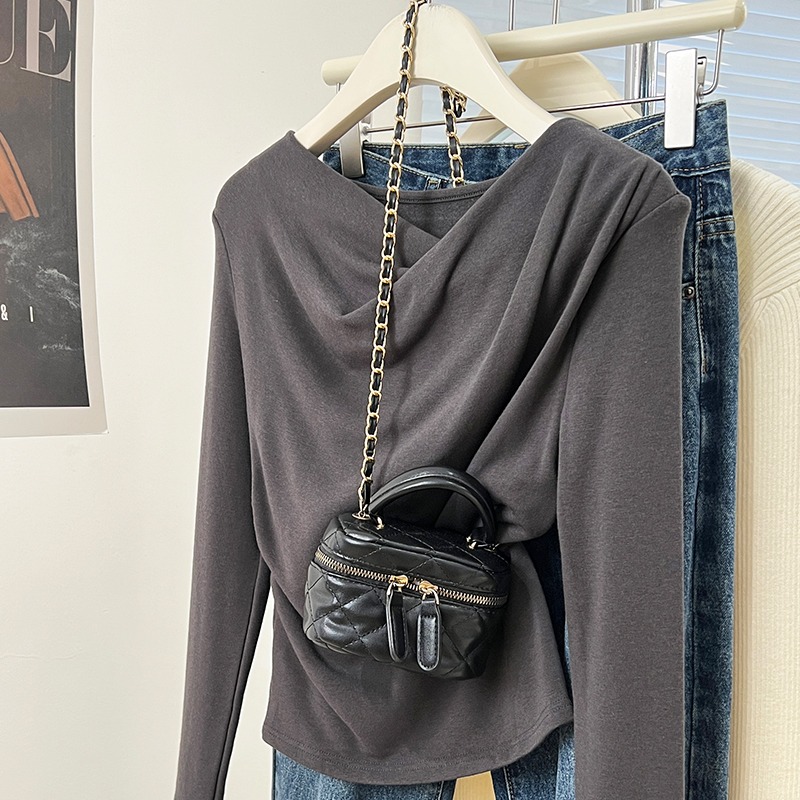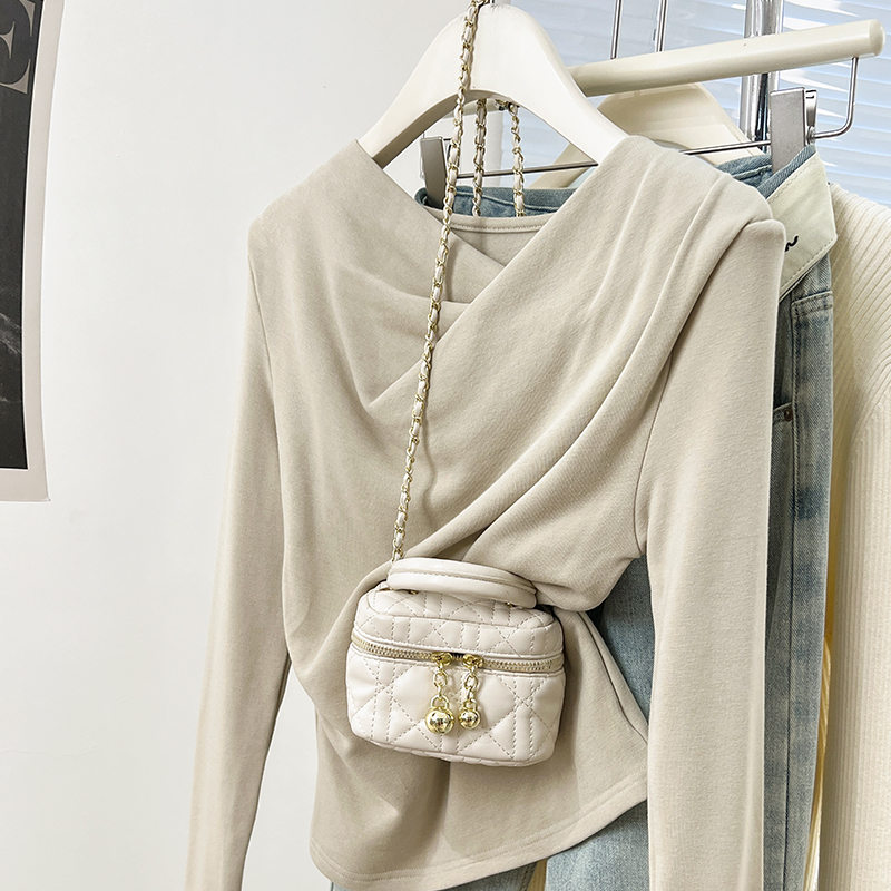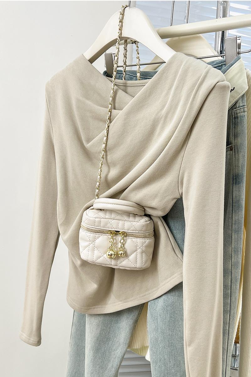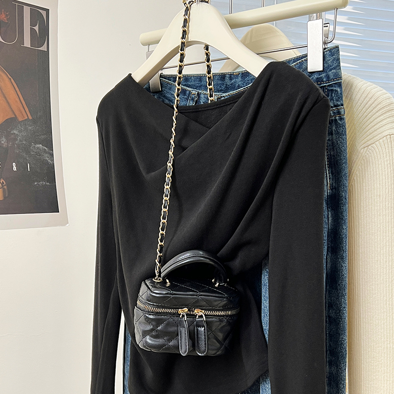 Real Price Real Shot #모달 불규칙 어깨 v- 넥 봄 헤어 바닥 셔츠에서 여성을위한 긴팔 티셔츠