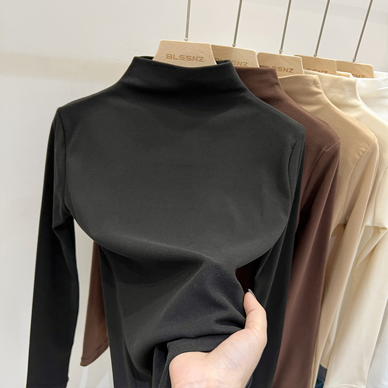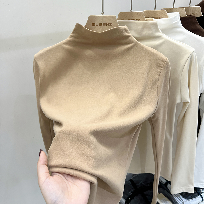 실제 가격 실제 샷 #가을과 겨울에 여성을위한 양면 독일 벨벳 둥근 목베이스 셔츠
