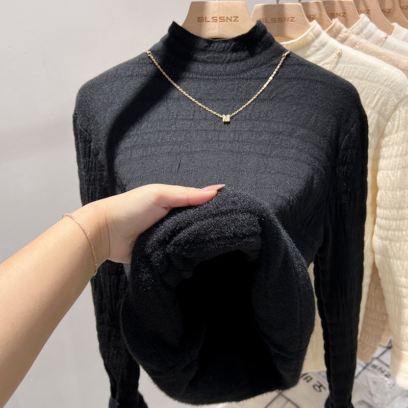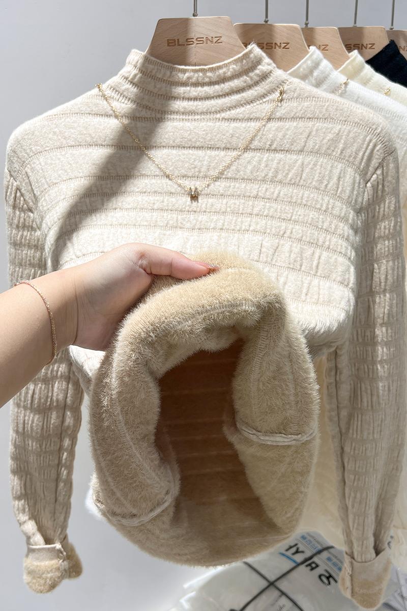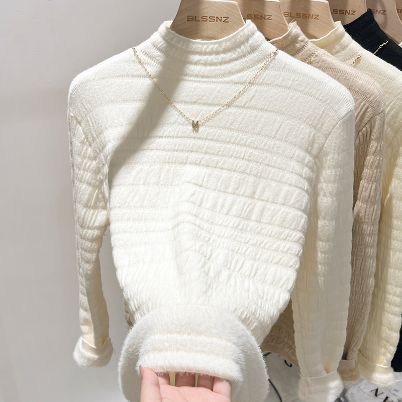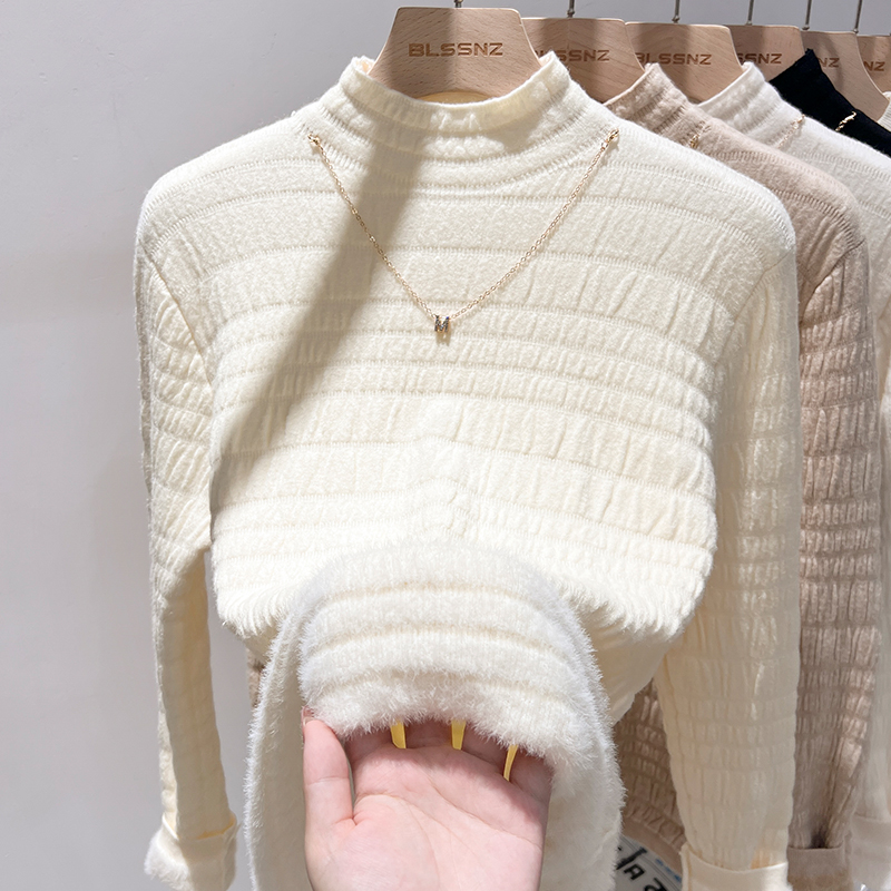 여성 가을과 겨울 통합 벨벳 반 높이 니트베이스 셔츠를위한 Real-Price Real-Price Plush Deichned Mink 스웨터 내부