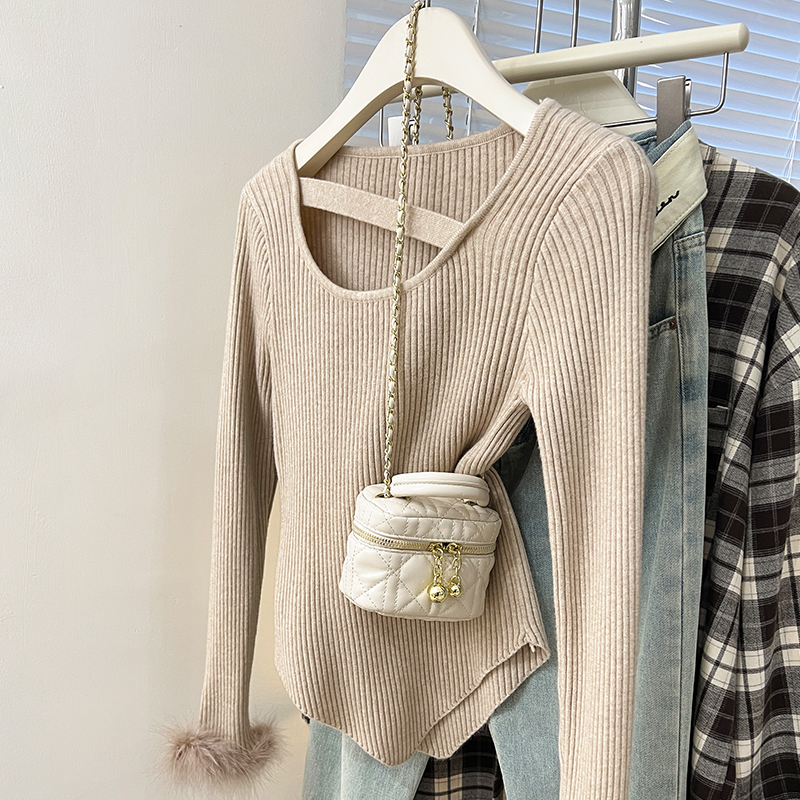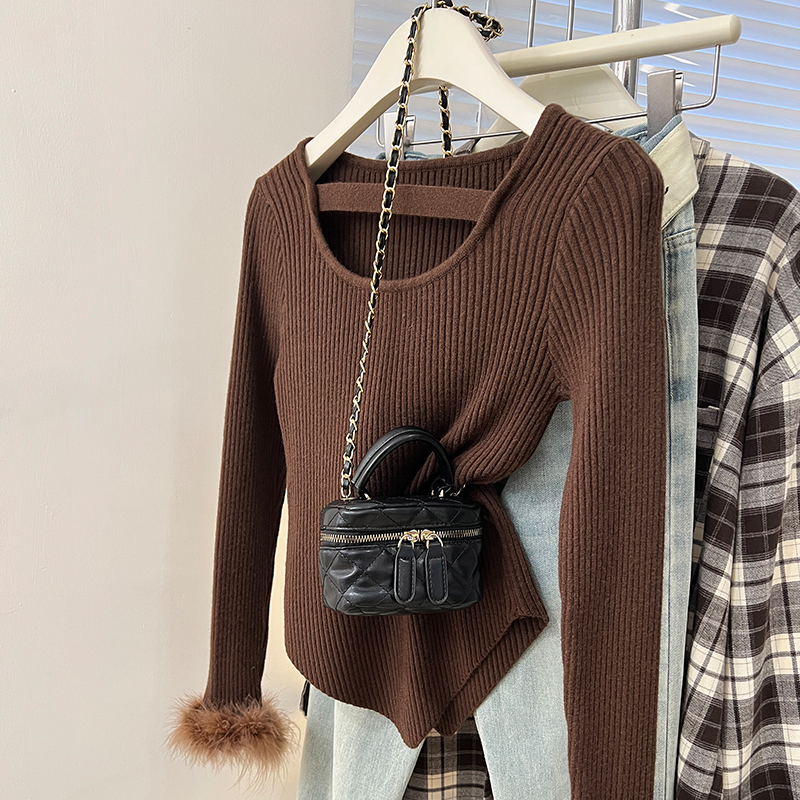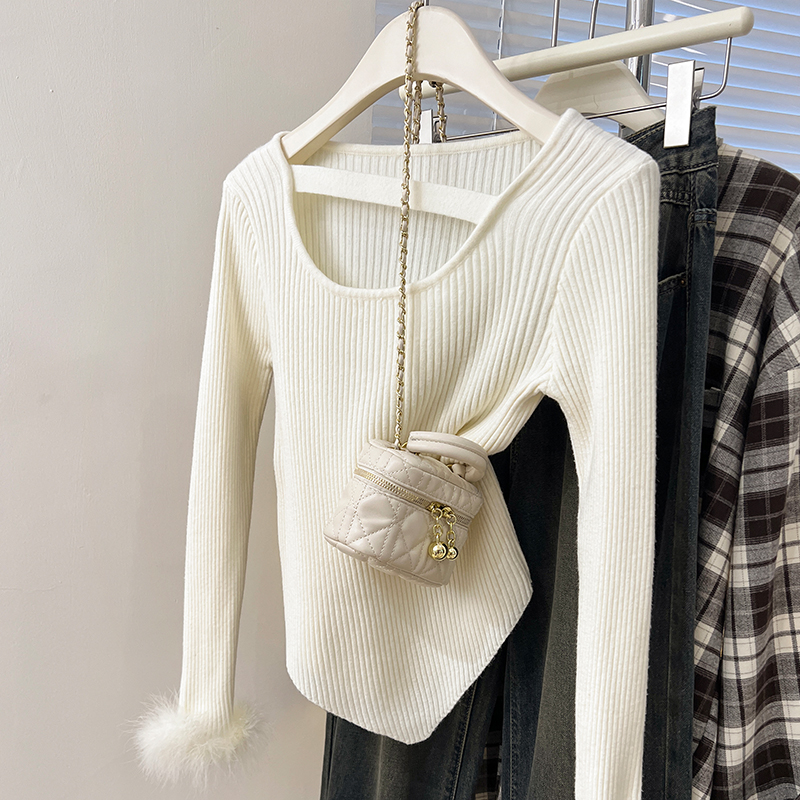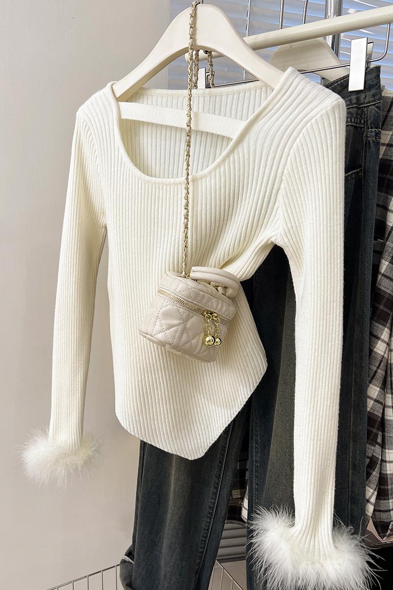 Real Price Real Shot #IRREGULAL FURRY Long-Sleeved Sweater 여성 가을 ​​고급베이스 셔츠 속옷
