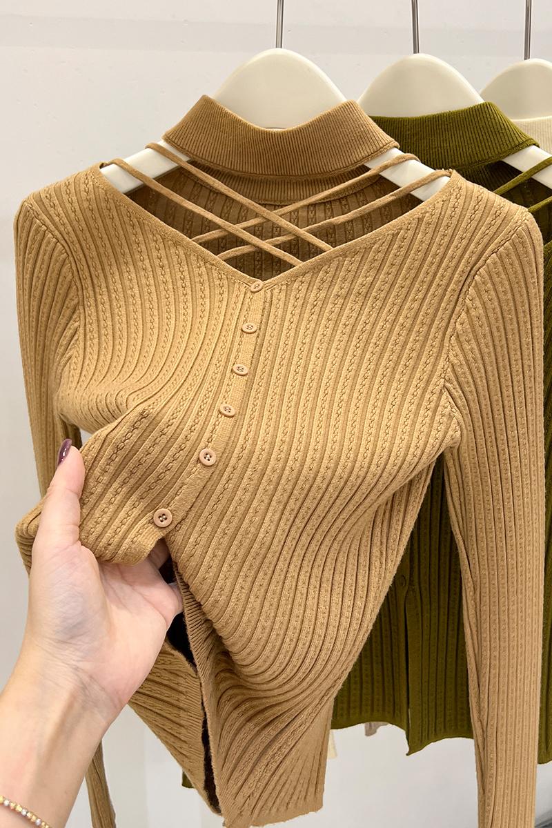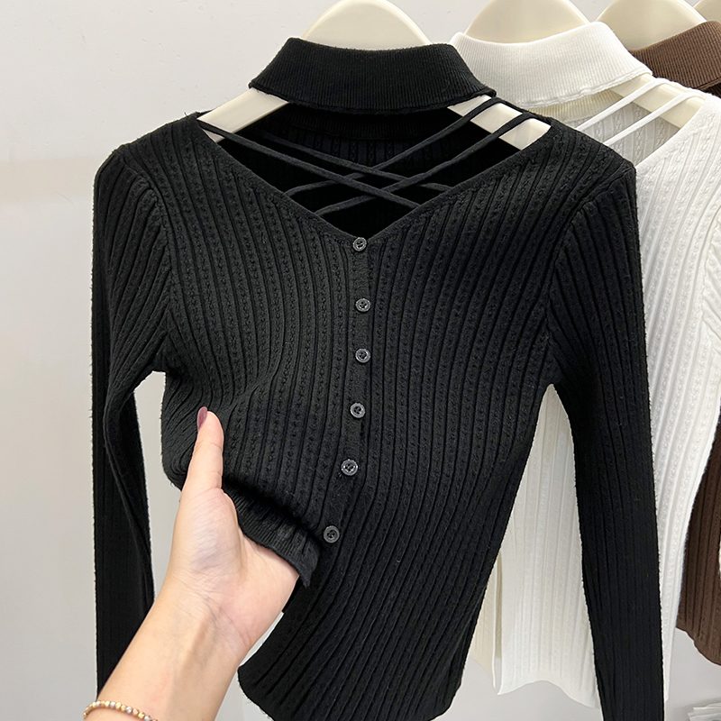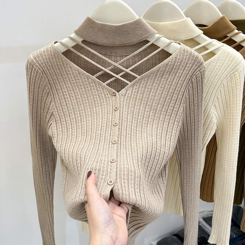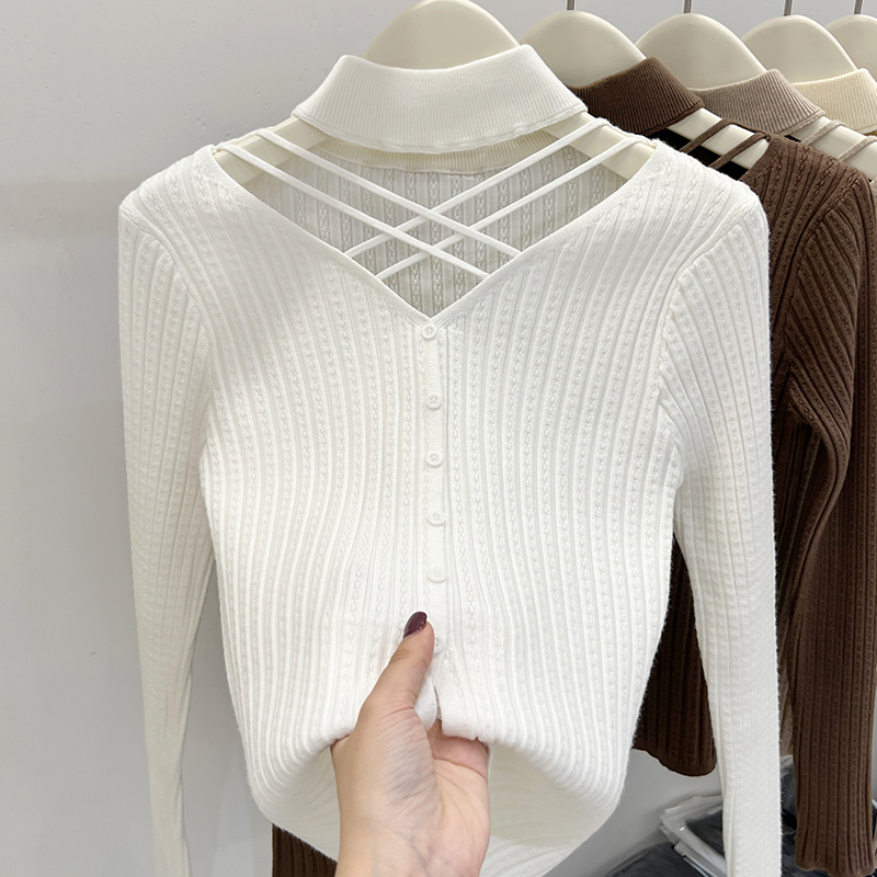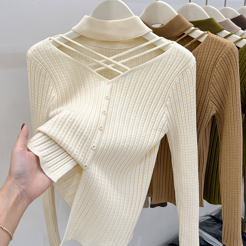 여성을위한 실제 실시간 실시간 중공 스웨터 긴팔 최고의 디자인 감각 가을과 겨울 여성을위한 새로운 반 높이의 바닥 셔츠