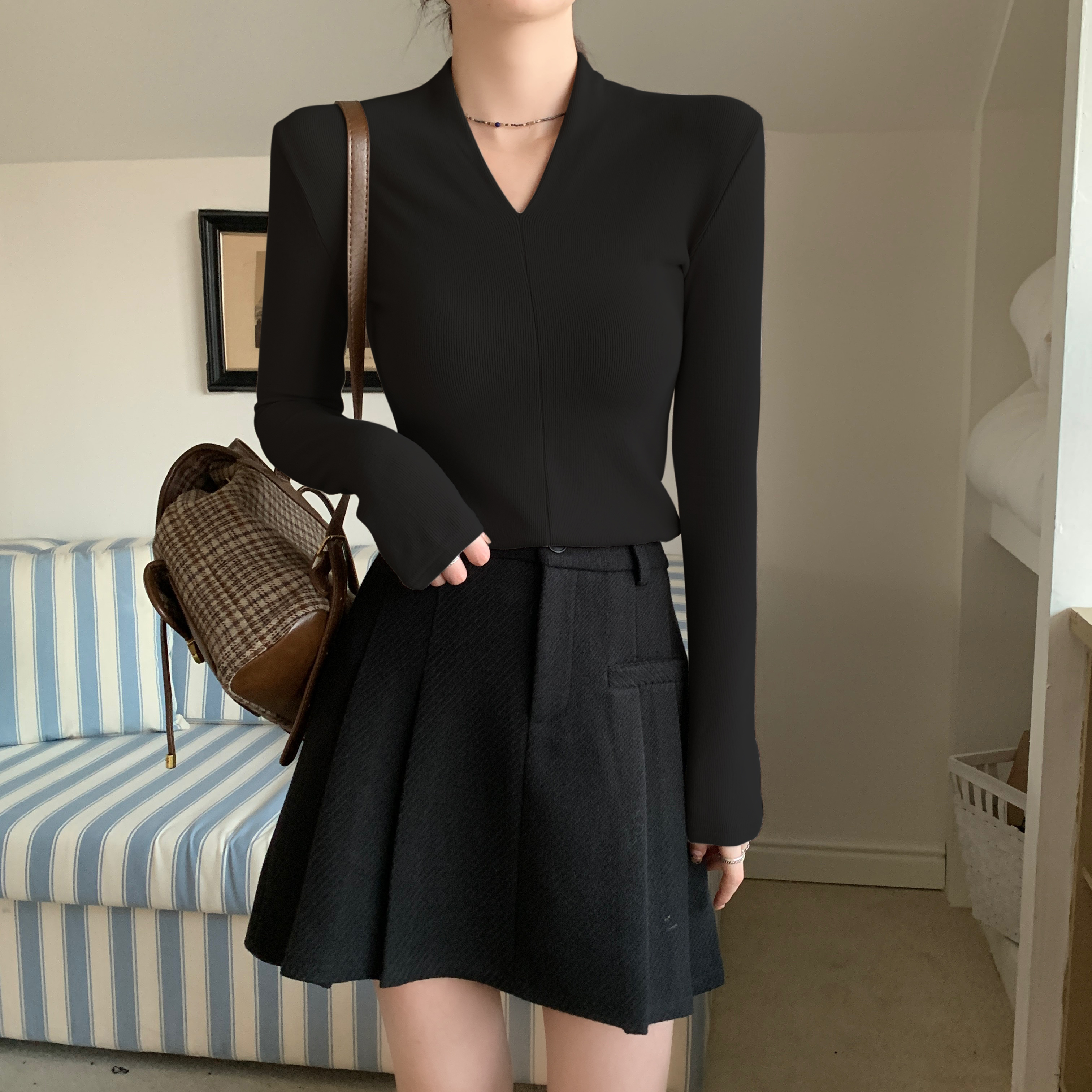 실제 가격 실제 샷 #V 목가 두꺼운베이스 셔츠 가을과 겨울 단색의 여성을위한 여성을위한 여성을위한 따뜻한 캐주얼 캐주얼 탑 티셔츠