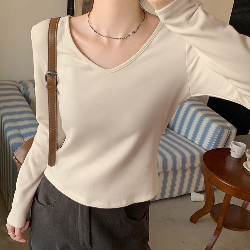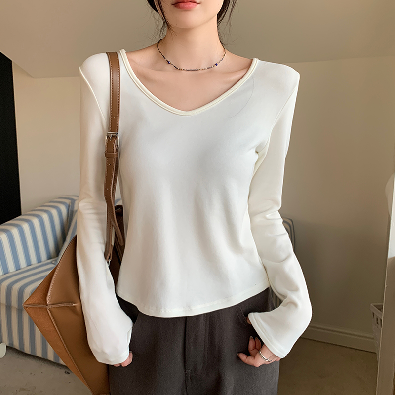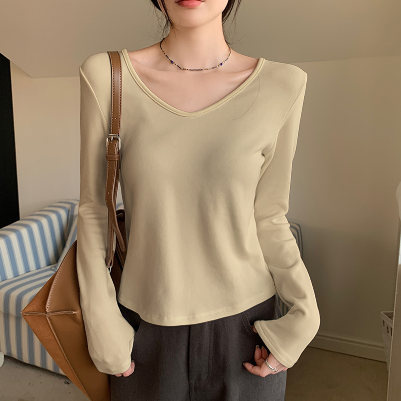 가을과 겨울 슬림 풀 오버 긴팔 티셔츠를 가진 여성을위한 실제 캐시미어 v- 넥베이스 셔츠