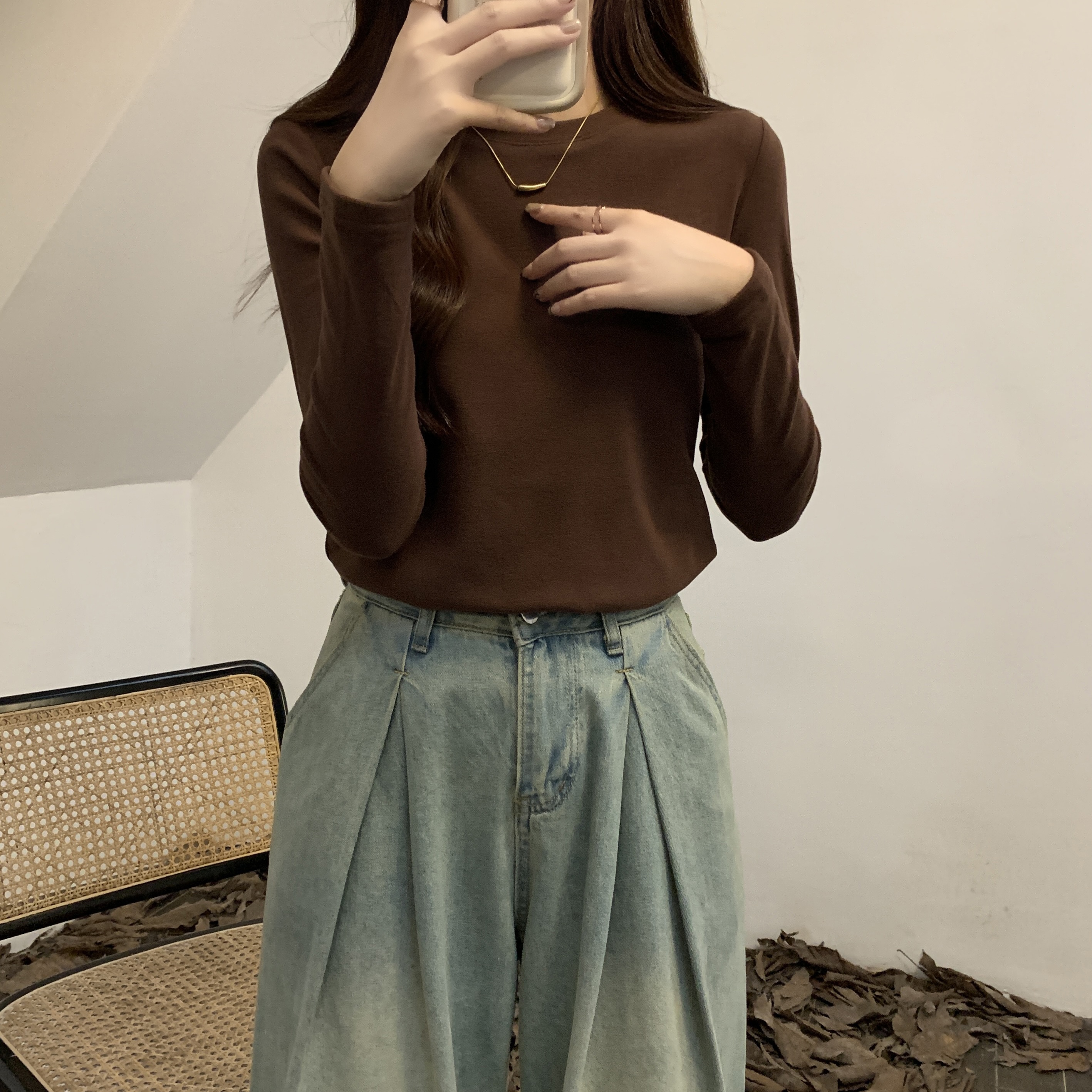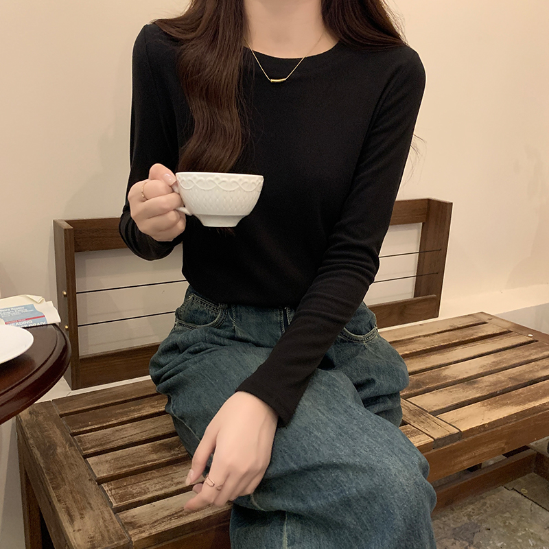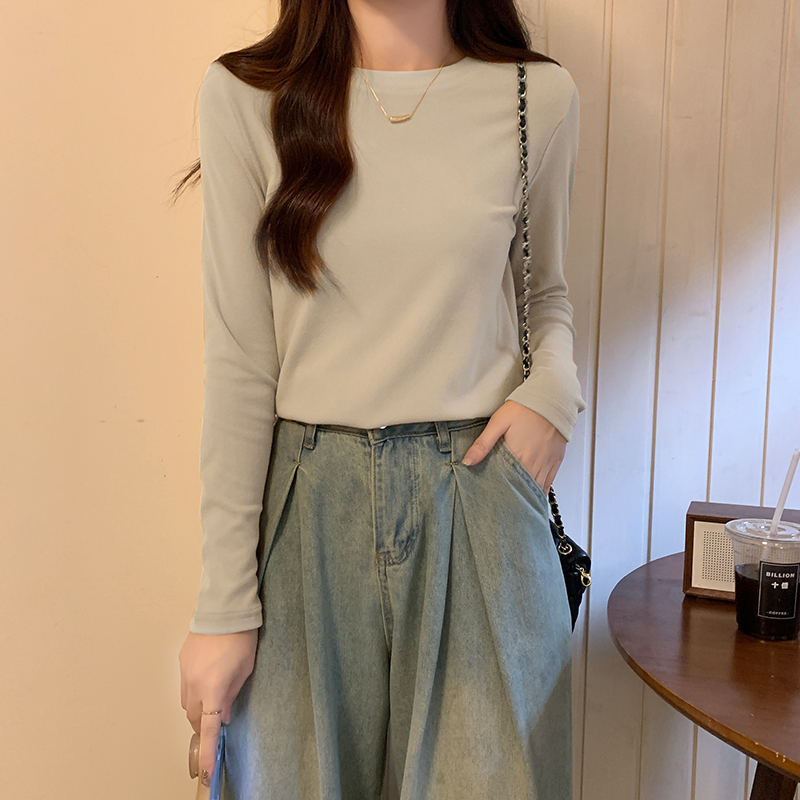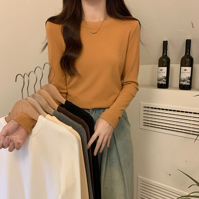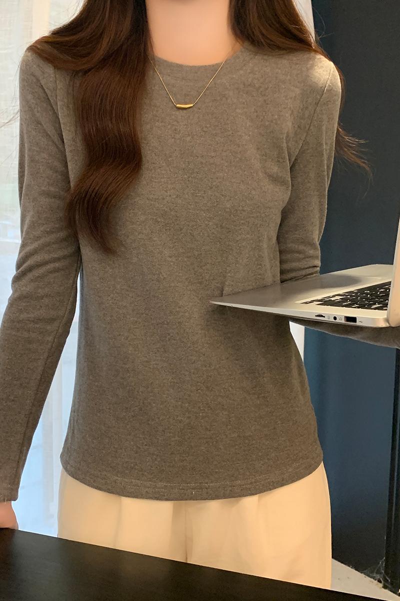 진짜 가격 실제 샷 # 가을과 겨울을 가진 여성을위한 라운드 넥베이스 셔츠 벨벳 두껍게 두꺼운 꽉 안쪽베이스 탑 맨 롱팔 티셔츠