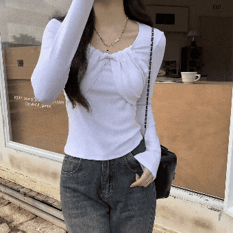 심플한 단색 디자인의 슬림핏 라운드넥 긴팔 티셔츠. 가을 시즌 데일리룩에 활용하기 좋은 베이직 아이템입니다.