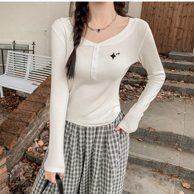 봄과 가을 디자인의 여성을위한 미국 스타일의 긴팔 티셔츠 짧은 탑이있는 틈새 셔츠