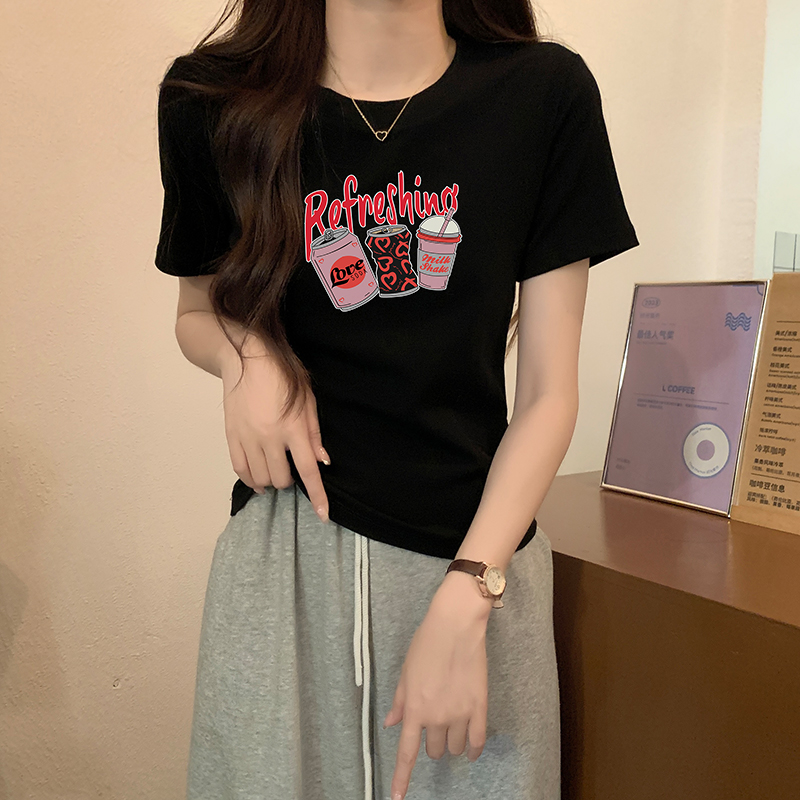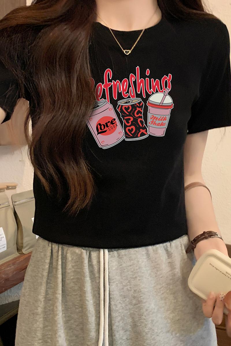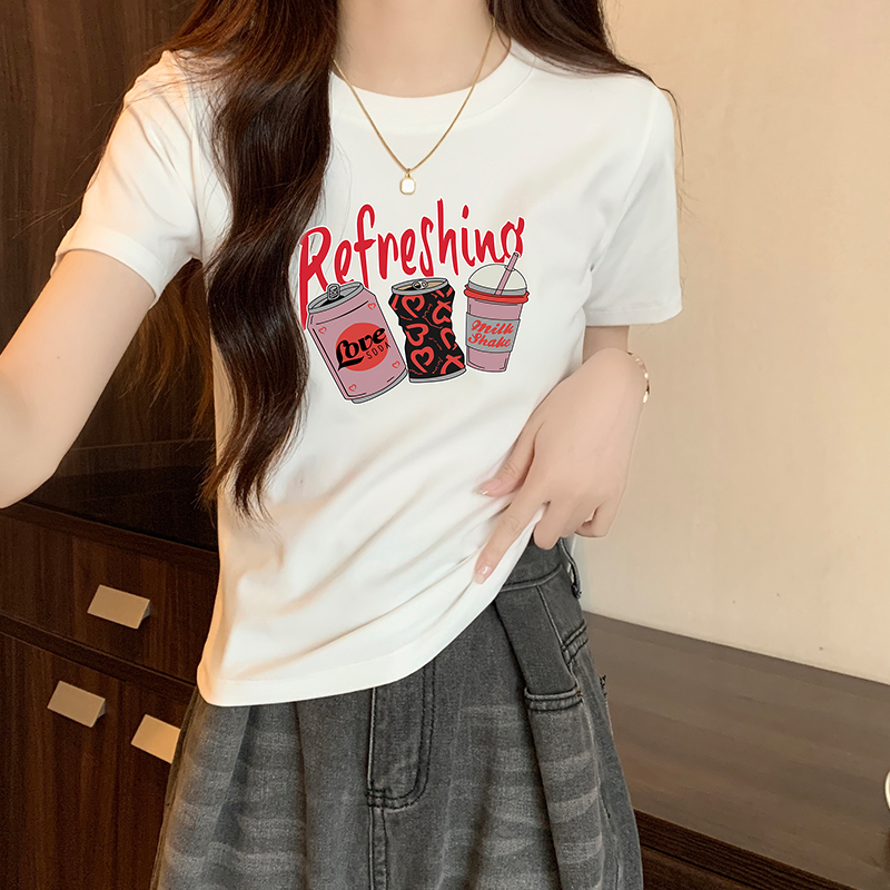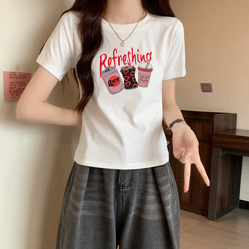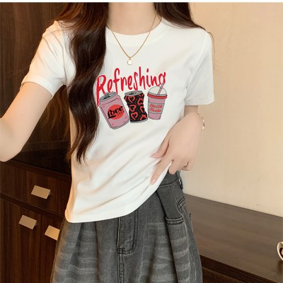 여름 여름 옷을 입은 여성을위한 유럽의 짧은팔 티셔츠 새로운 스타일 전면 어깨 고급 캐주얼 및 다목적 슬림 보디웨어