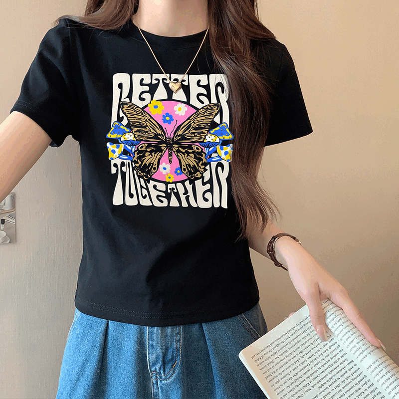 레트로 인쇄 어깨 짧은 슬리브 티셔츠 여름 디자인 짧은 작은 여름