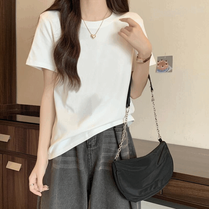편안한 루즈핏의 라운드넥 반팔 티셔츠. 캐주얼하면서도 트렌디한 코리안 스타일로 데일리하게 즐기기 좋은 아이템입니다.