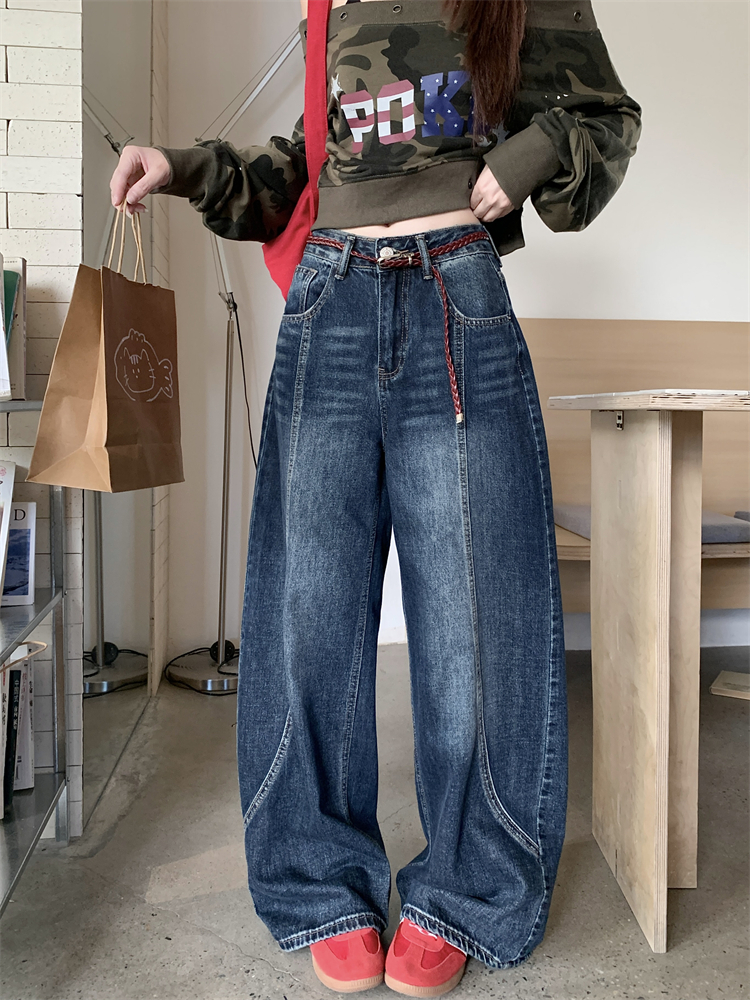 여성의 새로운 하이 웨이스트 느슨한 슬림 한 스트레이트 바지를위한 실제 미국 레트로 디자인 Scimitar 와이드 레그 청바지