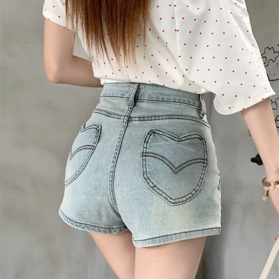 미국 핫 걸 러브 포켓 데님 반바지 여성의 하이 허리 슬림 한 작은 사람 리프팅 엉덩이 탄성 뜨거운 바지