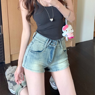 미국 레트로 핫 걸 데님 여성을위한 새로운 웨이스트 A- 라인 슬림 핏과 슬림 한 엉덩이 핫 바지