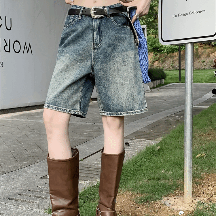 실제 샷, 실제 가격 ~ 허리를 슬리밍하는 여성을위한 새로운 레트로 세척 데님 바지