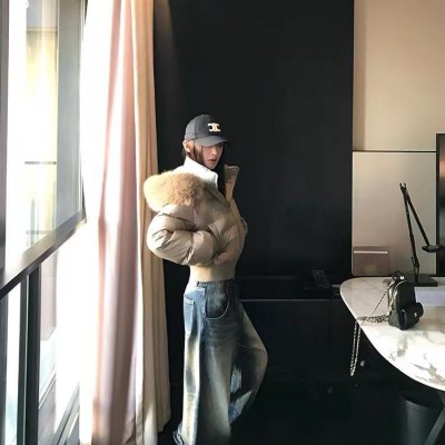 핀란드 눈 상황 한 인사이드 한 가스 학원 스타일 겨울 모피 칼라 후드 허리 수축 슬림해 보이는 두꺼운 쇼트 스타일 아래 면화 의류 여성