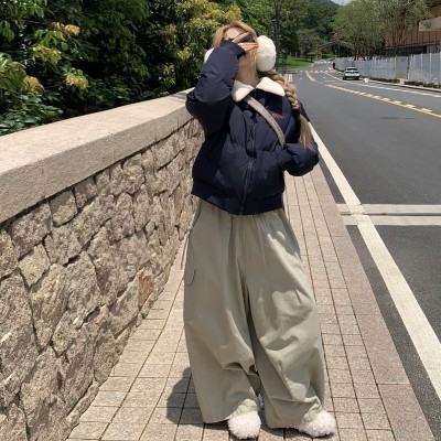 피어 하지마. 켜기 2025 새로운 아메리칸 레트로 양털 폴로 칼라 면 의류 여성