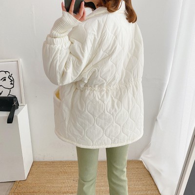 chic 한국 가을과 겨울 패션 레트로 링 그리드 펌프 로프 허리 어린 양 머리 안감 따뜻하게 지내라. 느슨한 코튼 코트 외투