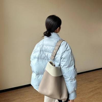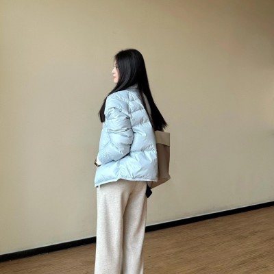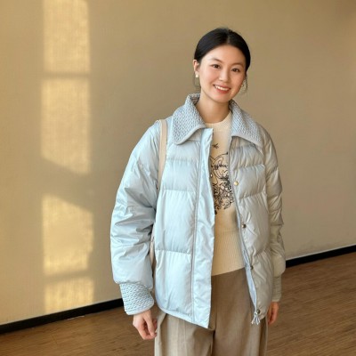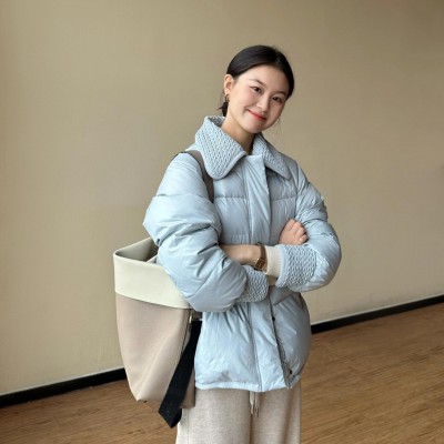 파란색 폴로 칼라 디자인 센스 면 옷 여성 코트 겨울 새로운 패딩 재킷 보온 두꺼운 아래 면화 의류