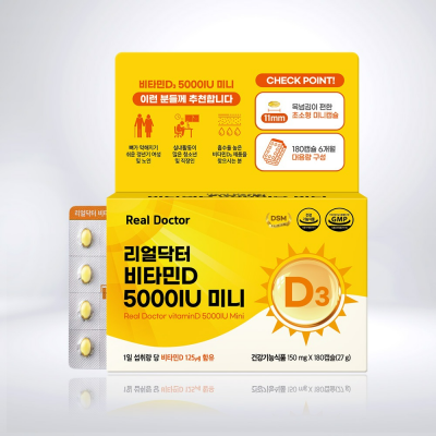 [6개월분] 비타민D 5000IU 미니 180캡슐 1개 미니캡슐 고함량 뼈건강 리얼닥터