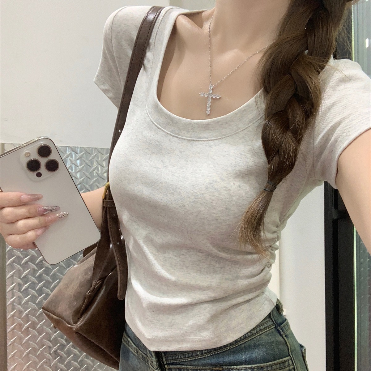 실제 사진 여름 슬림하고 순수한 욕망 v- 넥 플라잉 슬리브 슬림하고 달콤한 6 마일 니트 짧은 슬리브 탑