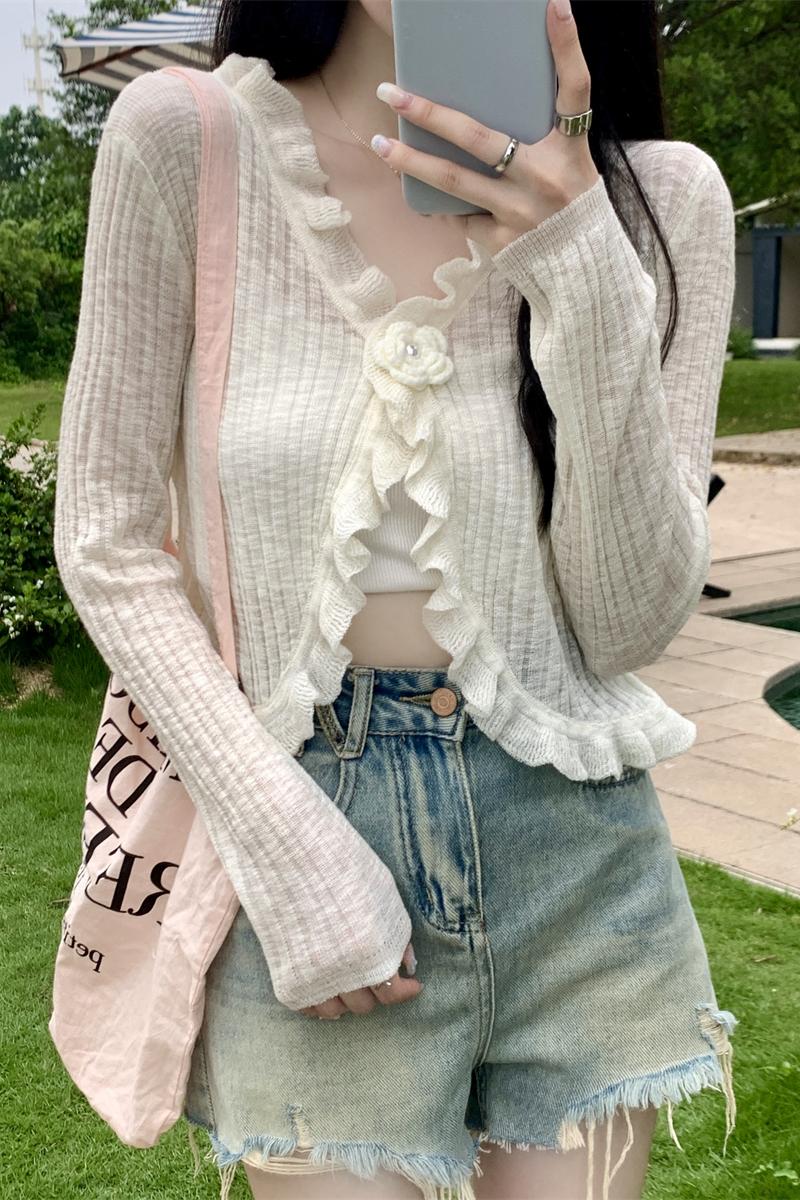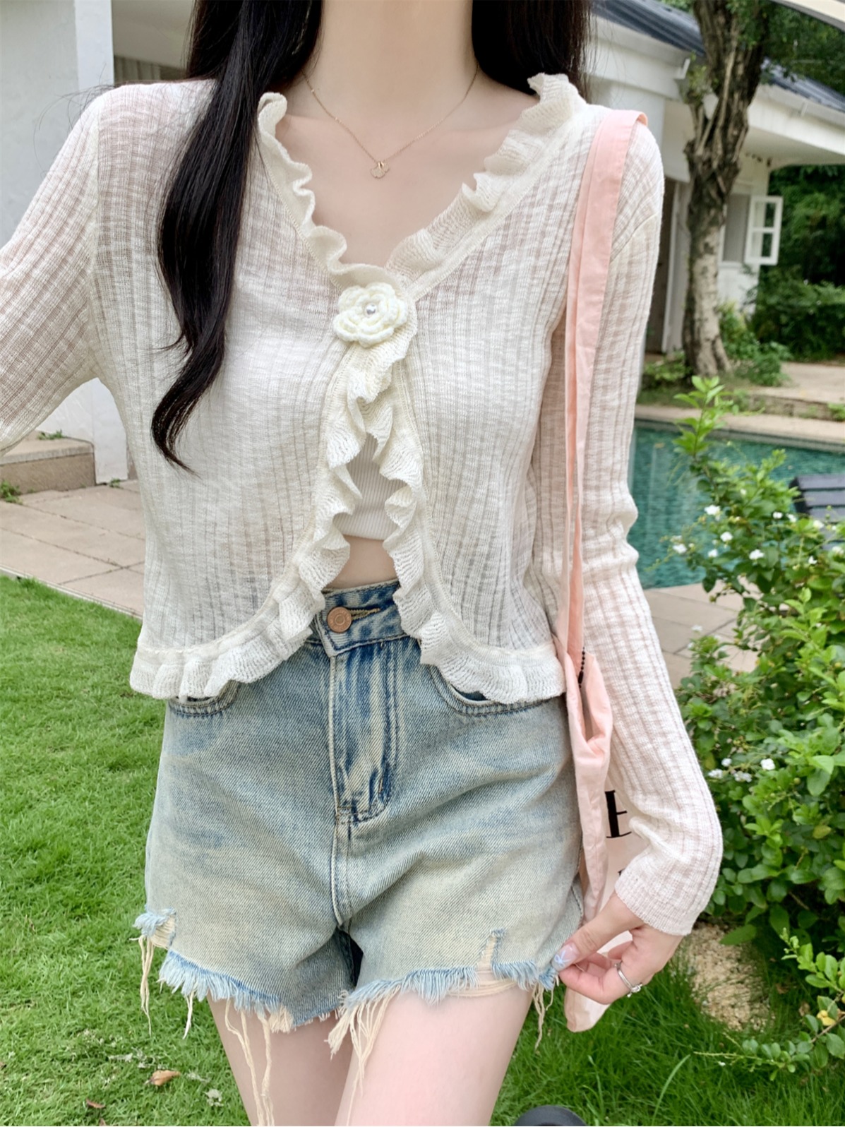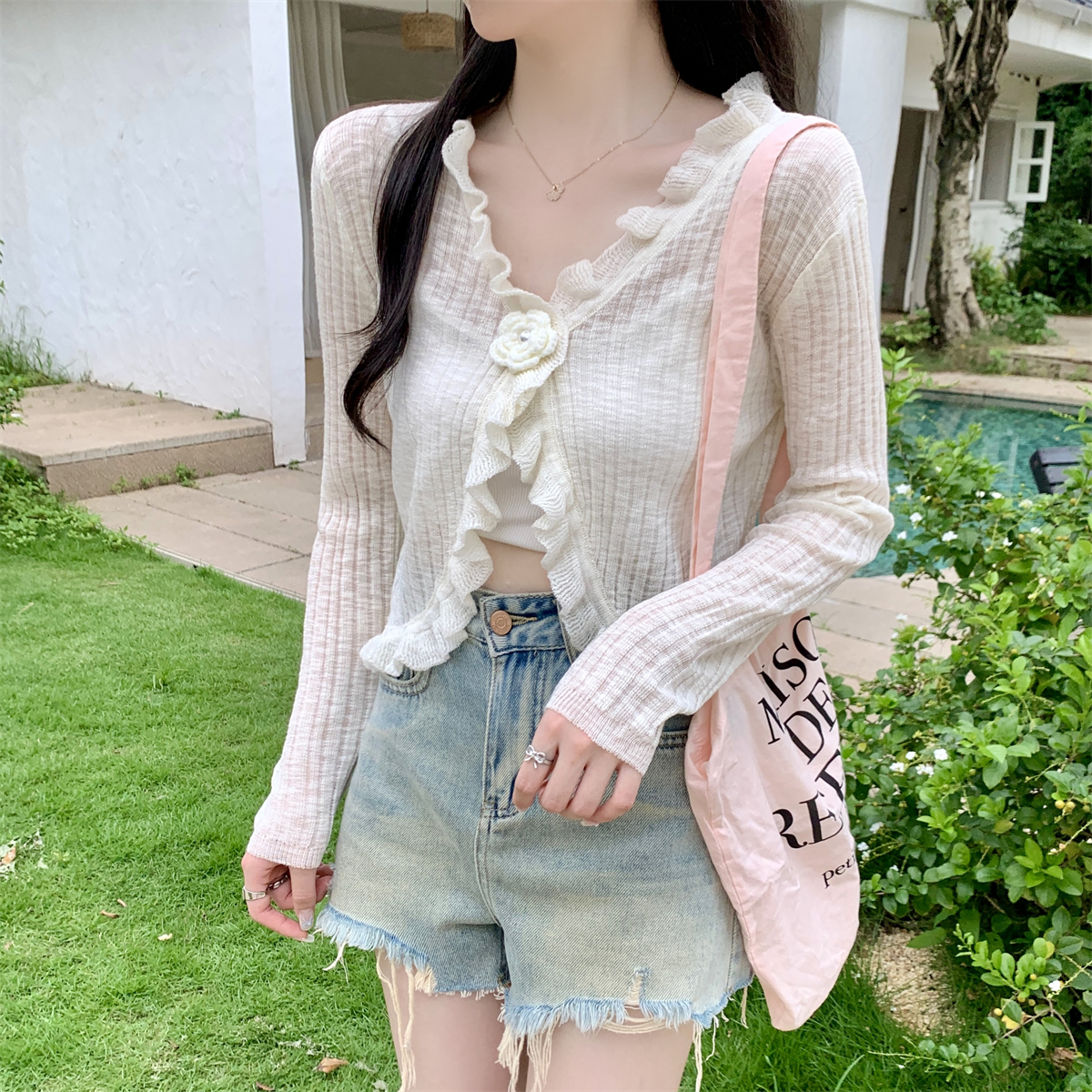 실제 여름 여름 중공 나비 디자인 순수 면화 다목적 주름 짧은 슬리브 티셔츠 탑