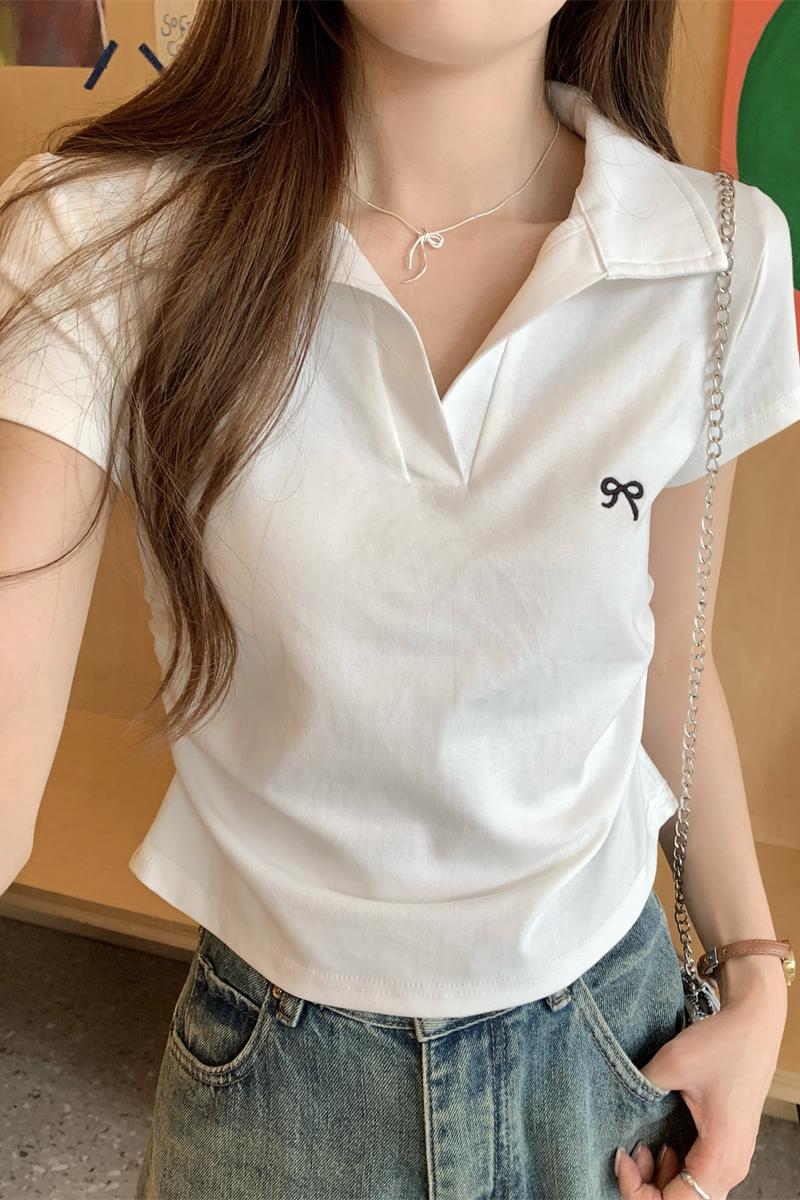 BM 대형 라운드 넥 버튼 디자인 폴카 도트 연령 감소 순수면 단락 티셔츠 탑의 여름