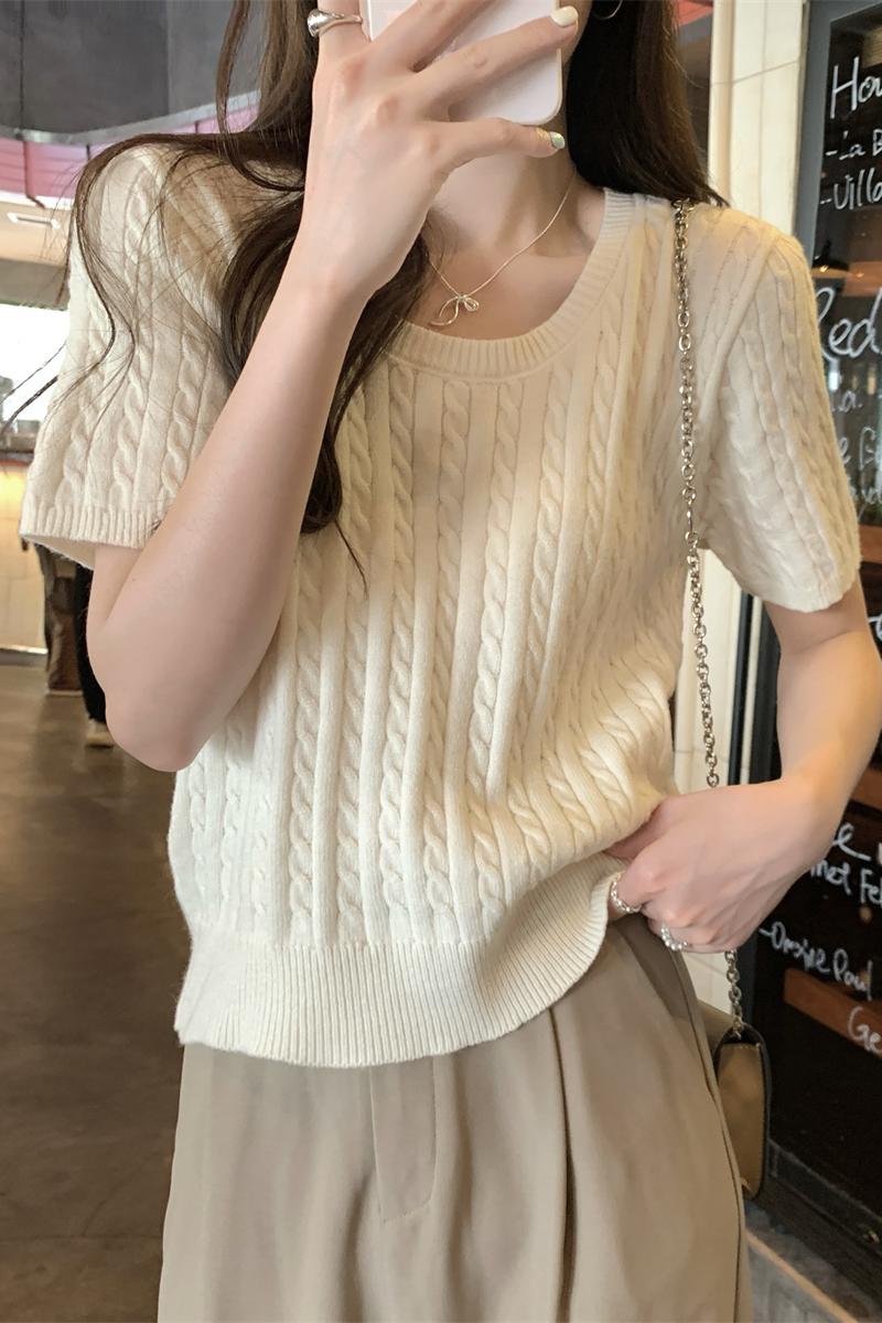 여름 한국어 버전 v- 넥 슬림 한 어깨에 맞는 숄더 뼈 디자인 순수면 다목적 짧은 슬리브 티셔츠 탑
