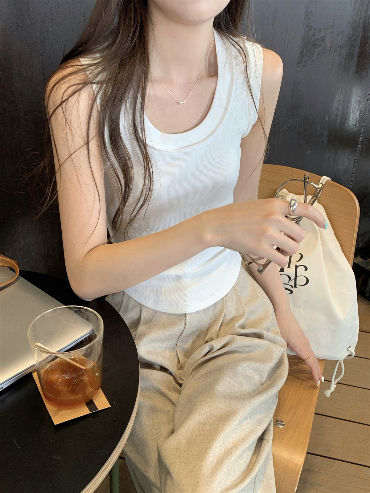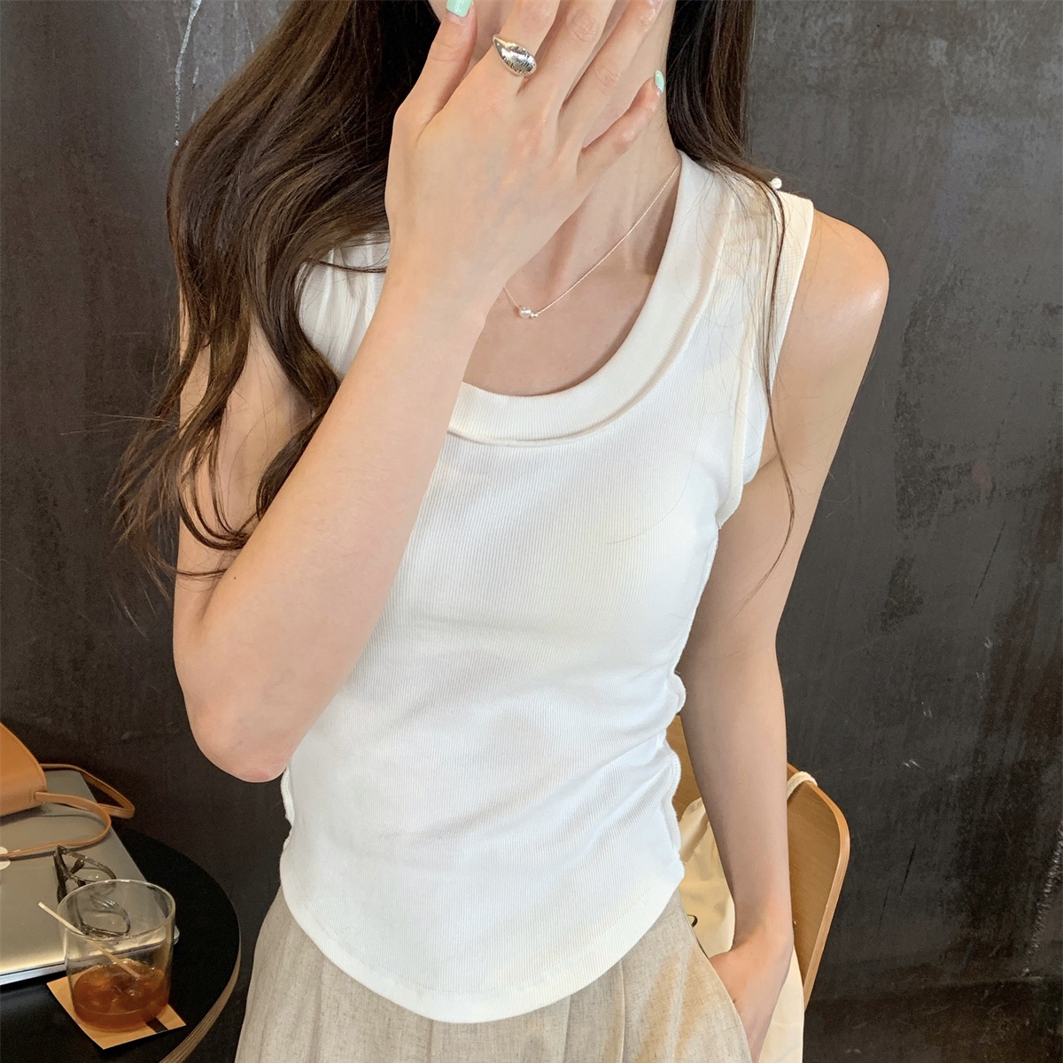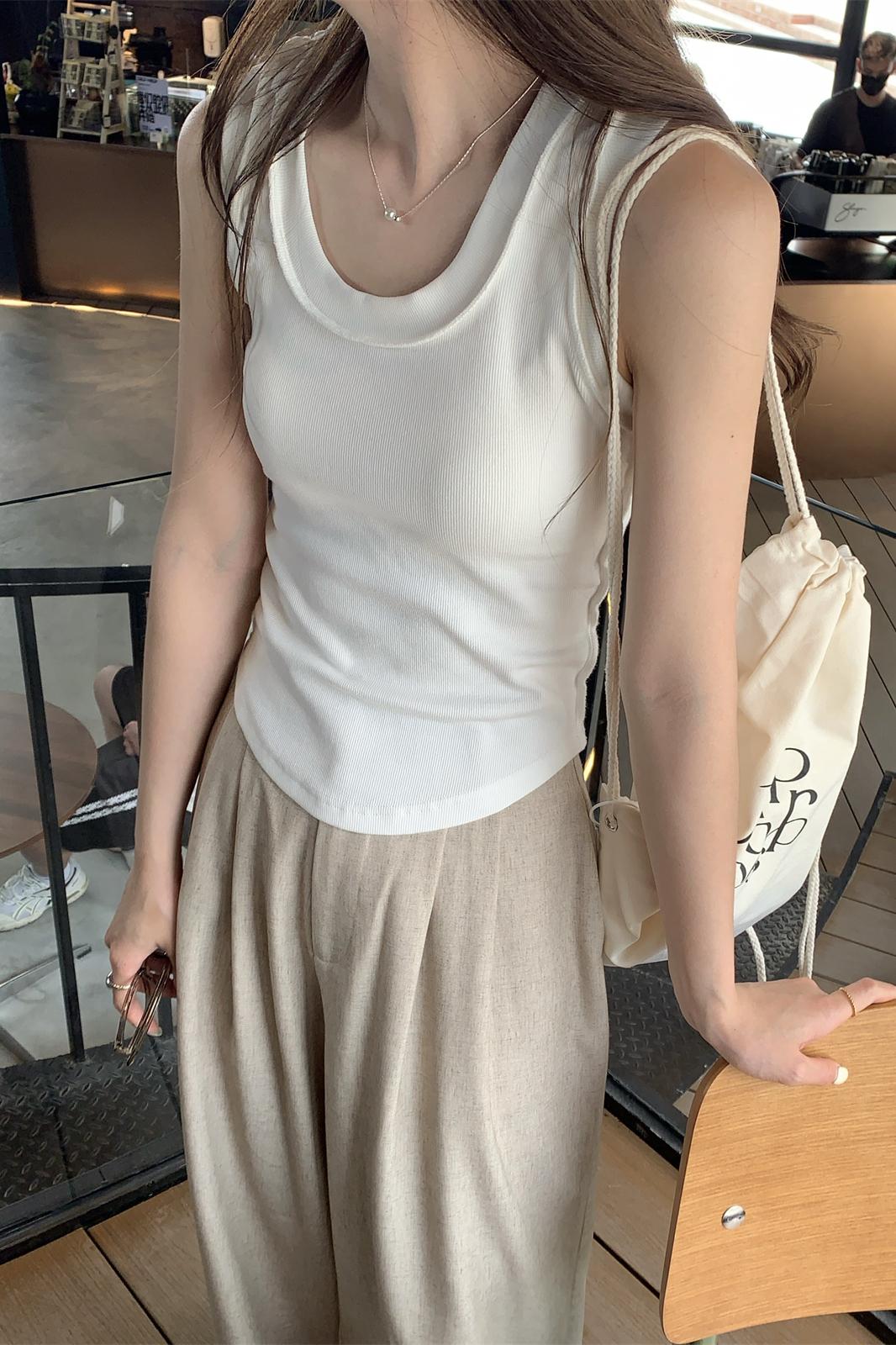 실제 사진 여름 여름 의 슬림 핫 소녀 물고기 뼈 슬리밍 디자인 다목적면 조끼 티셔츠 여성