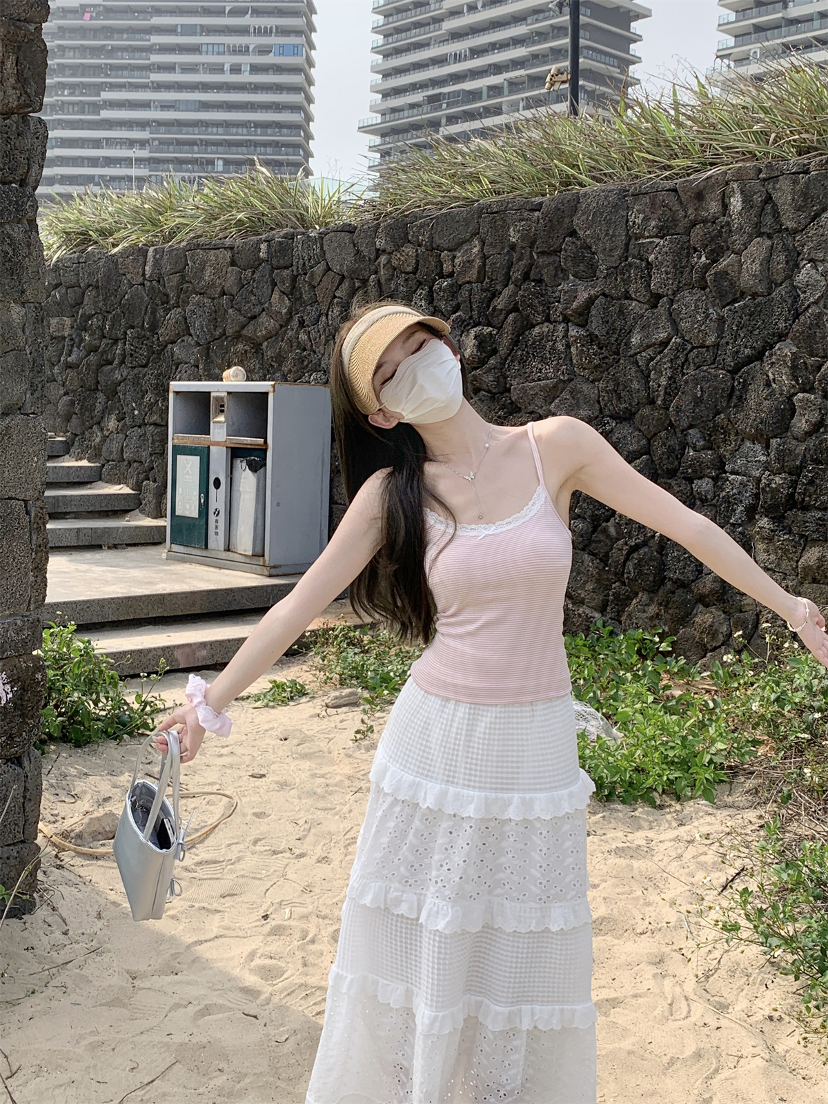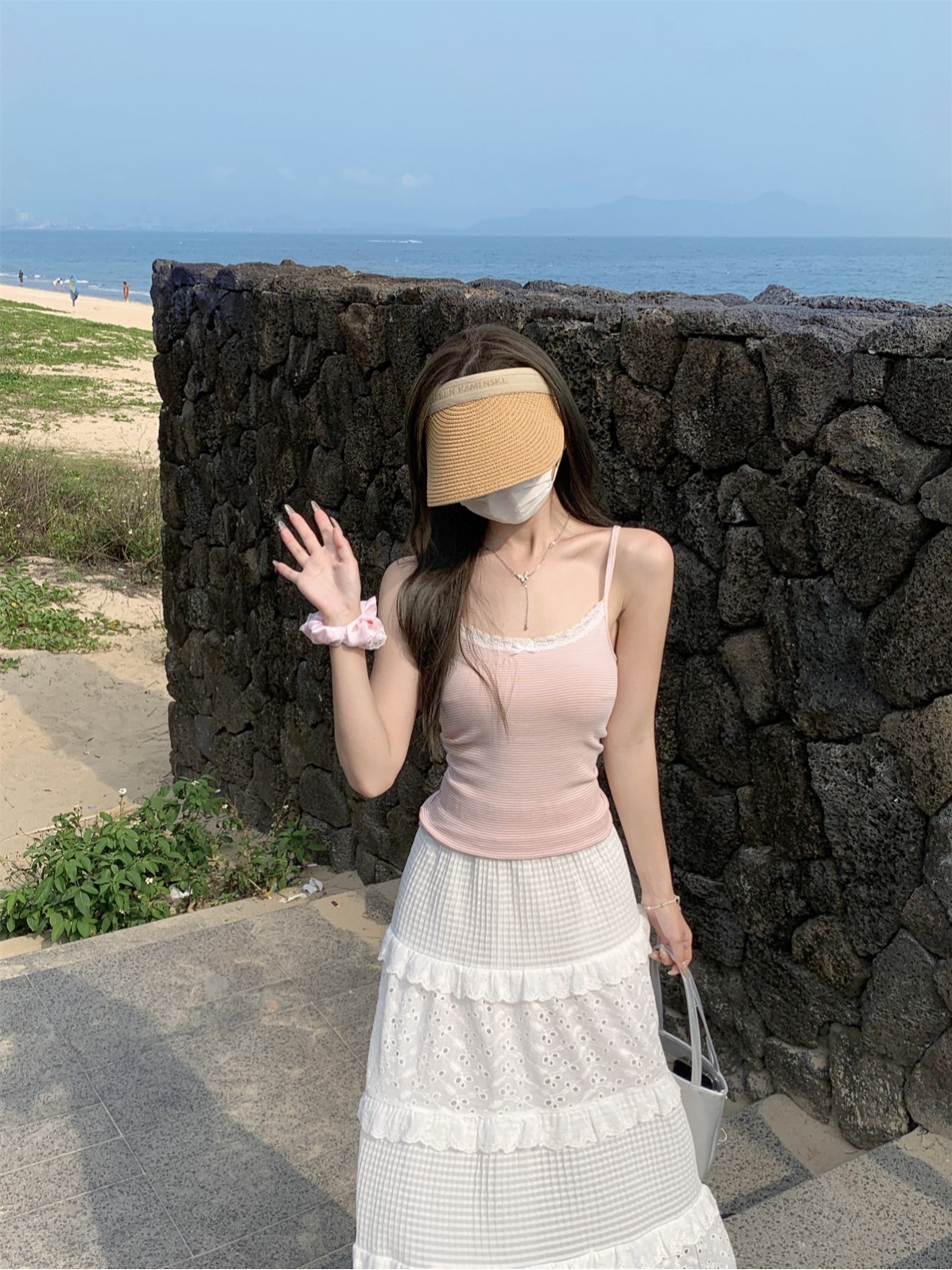 BM 순수 레이스 스 플라이 싱 폴카 도트 연령 감소 순수면 서스펜더 티셔츠 조끼의 실제 여름 한국어 버전