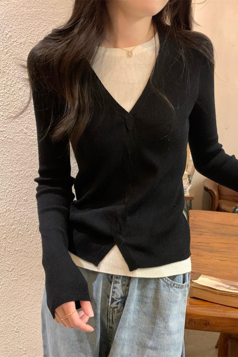 하프 높이의 중공 벨벳 열 내부 니트베이스 스웨터와 짝