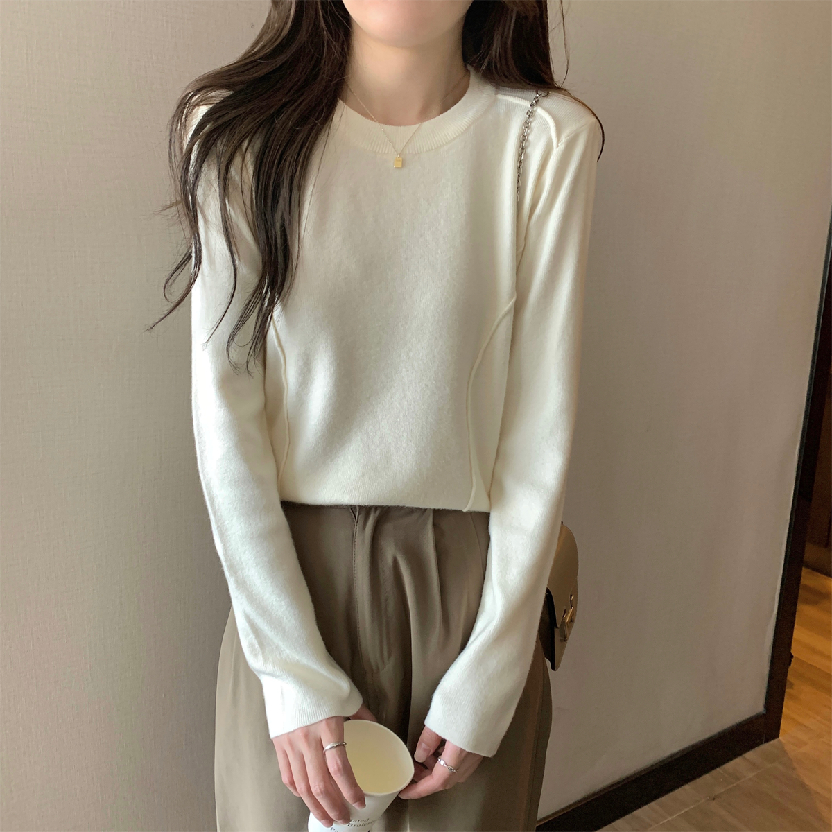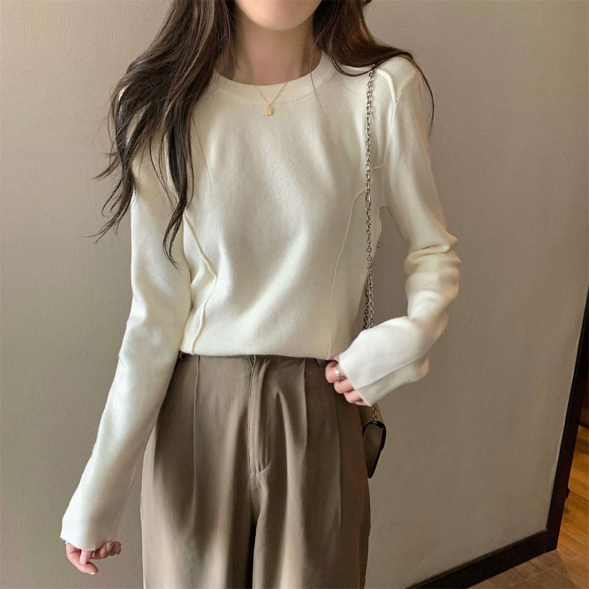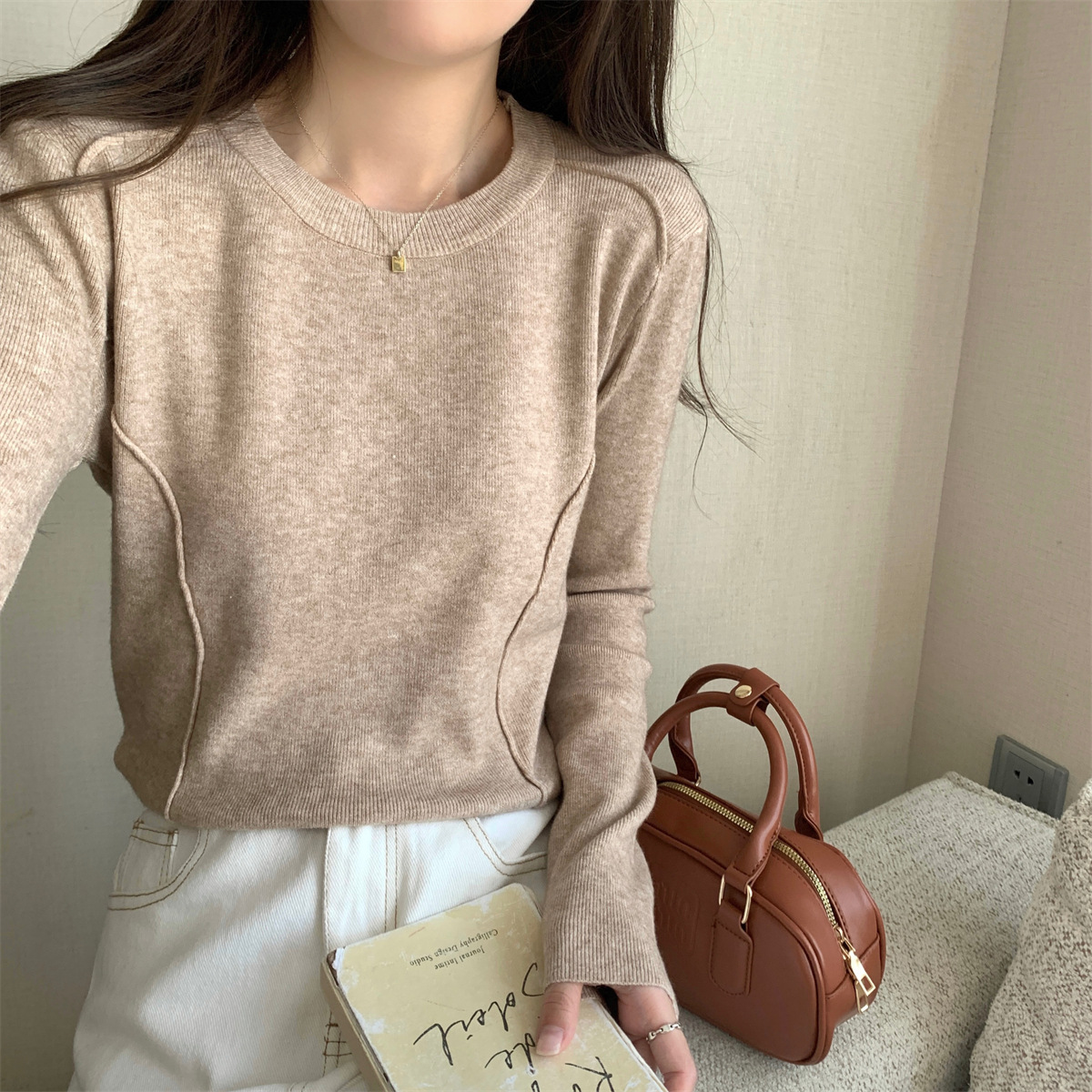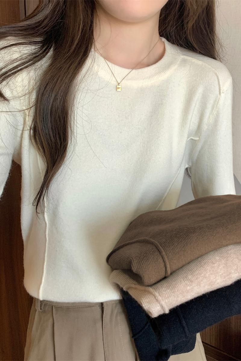 가을 및 겨울 슬림 한 단색 반 높이 반 인용 여성을위한 기본 내부 니트베이스 스웨터