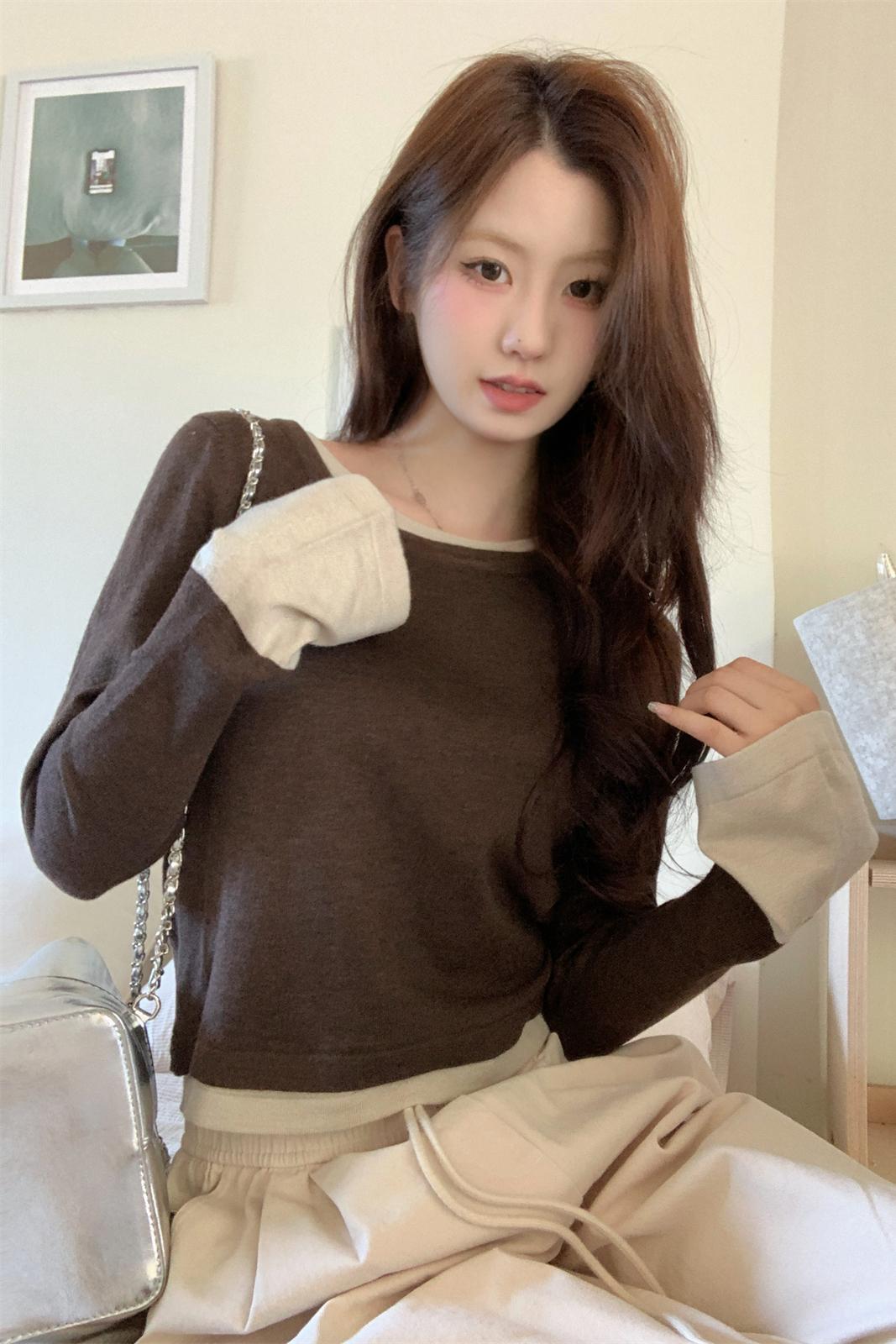 실제 사진 가을 겨울 한국 스타일 슬림 기질 정장 칼라 독특한 슬림 내부 니트베이스 스웨터