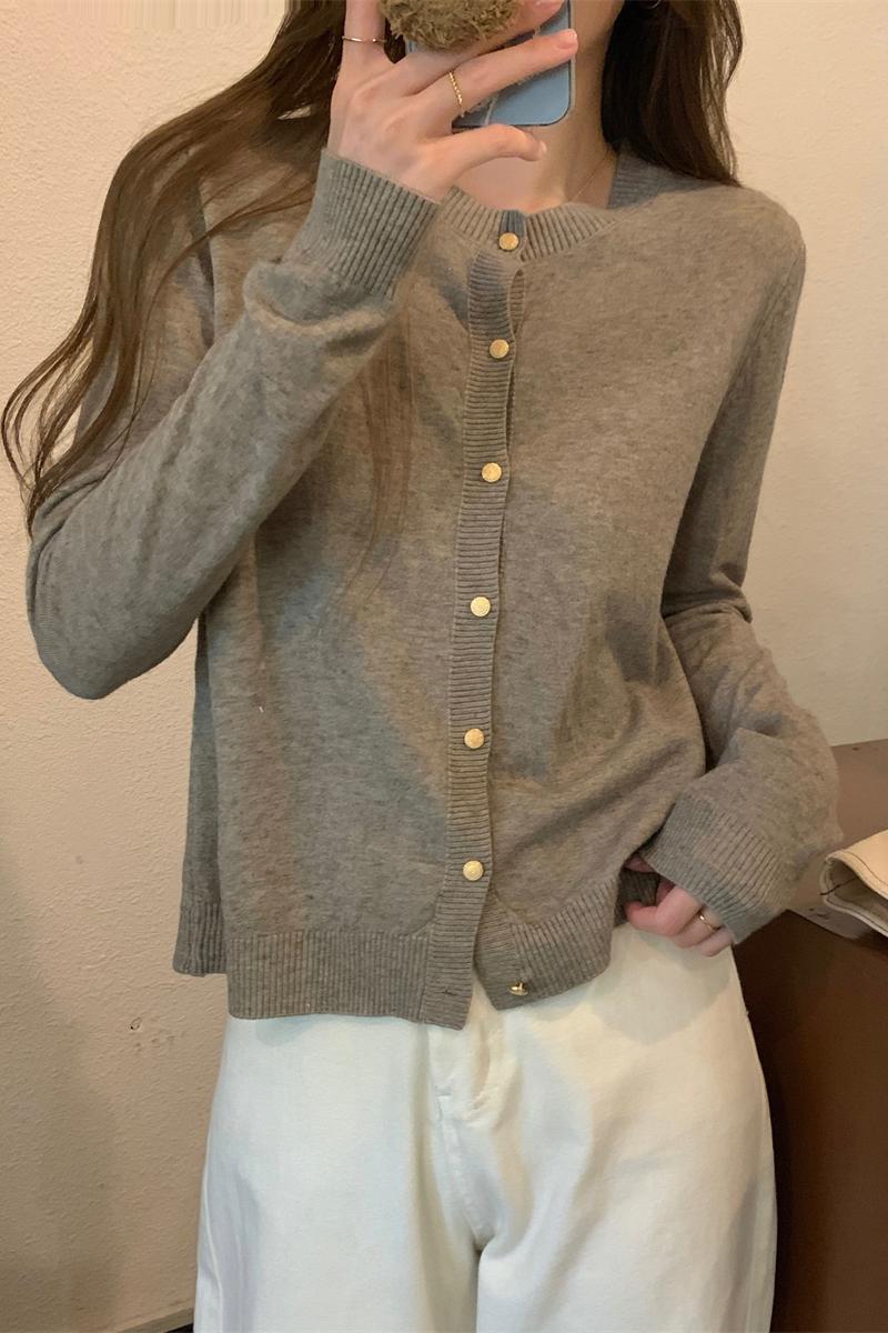 가을 겨울 슬림 반절방 칼라 포켓의 실제 의 여성용베이스 스웨터가있는 슬림 한 버튼을 보이게합니다.