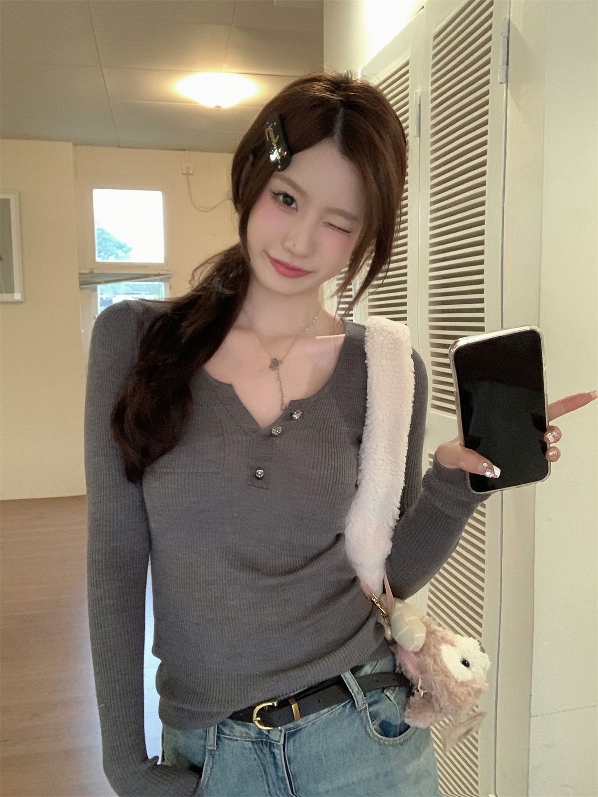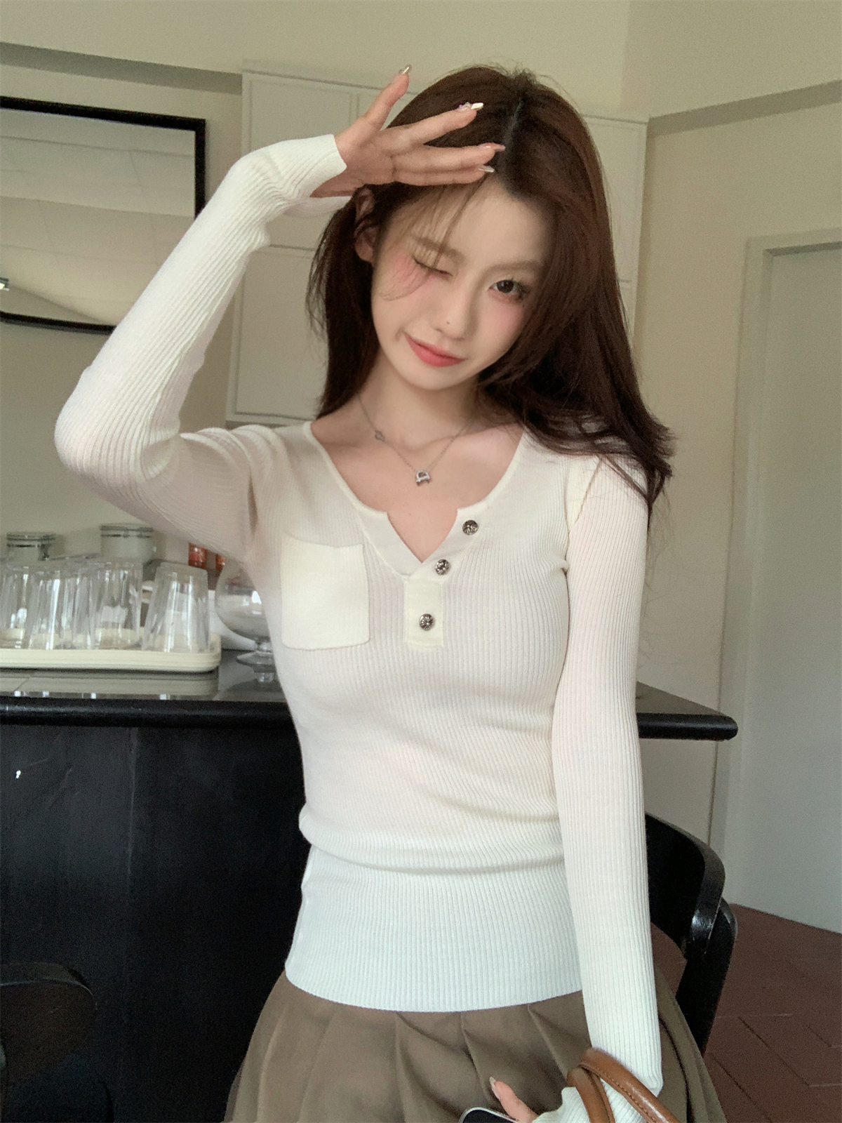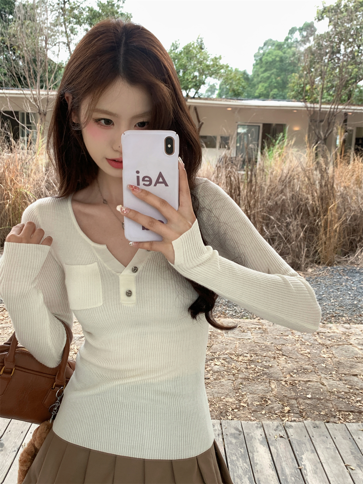 실제 사진 가을 겨울 한국 스타일 슬림 폴로 칼라 캐주얼 및 다목적 앤디 양털 내부 니트베이스 스웨터