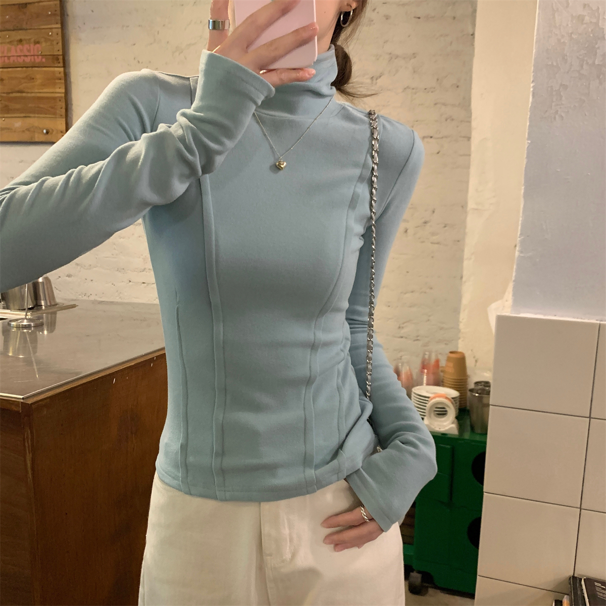 실제 사진 가을 겨울 대조 줄무늬 가짜 2 피스 다목적 기질 니트 안쪽 바닥 스웨터 스웨터