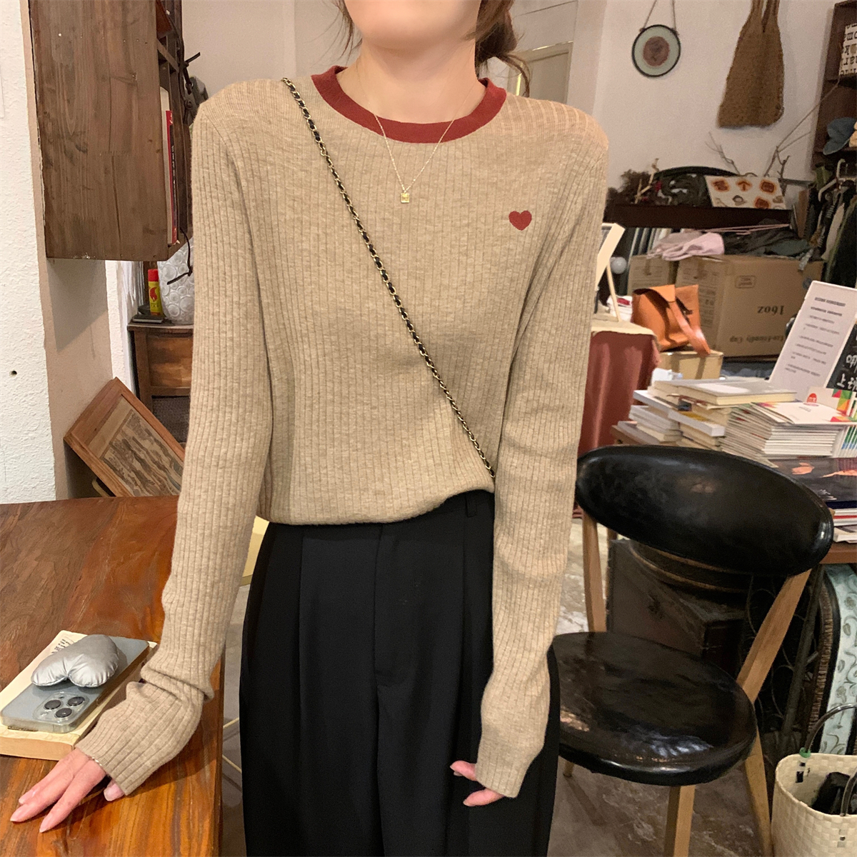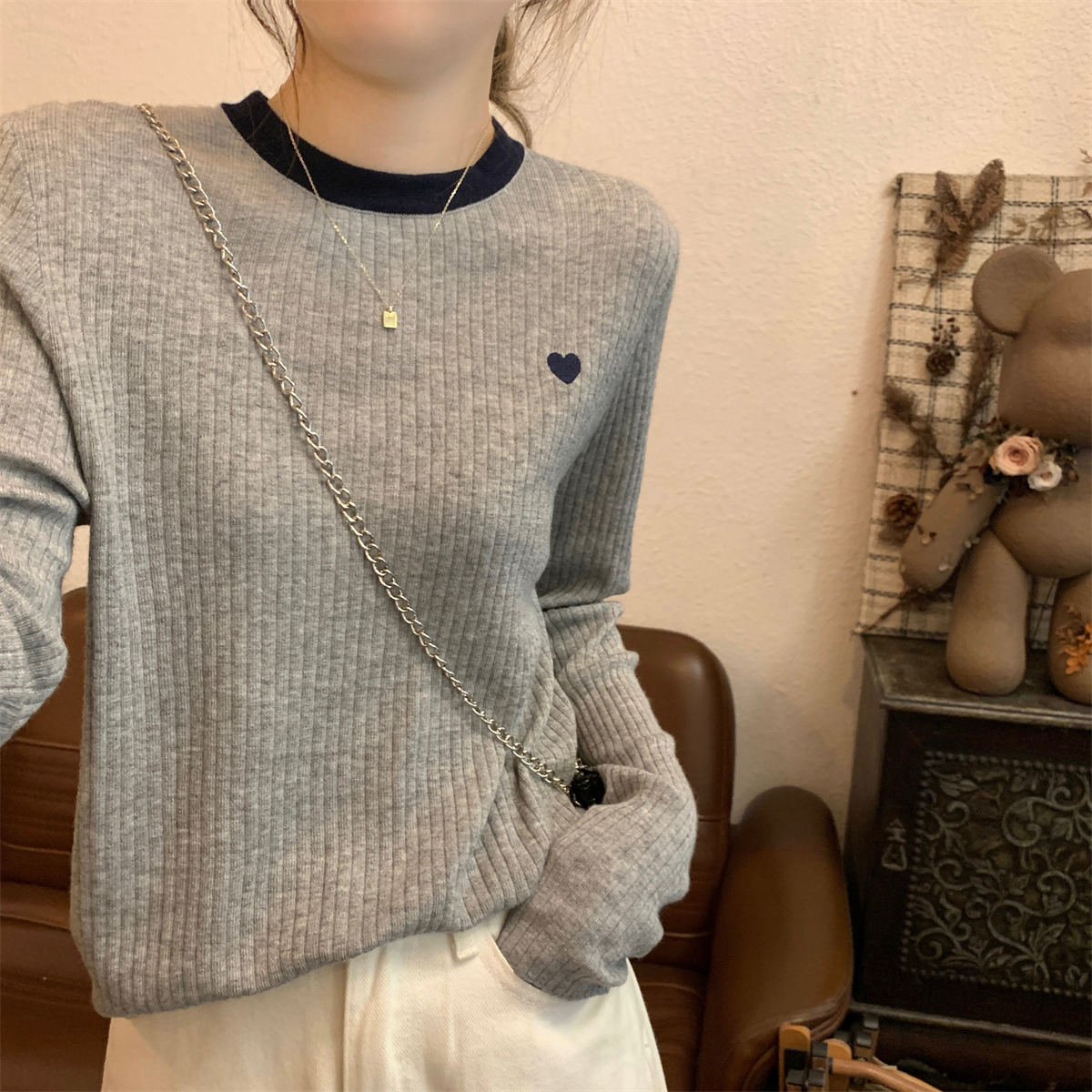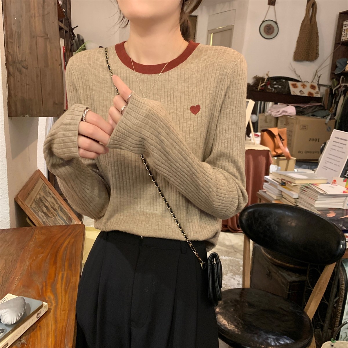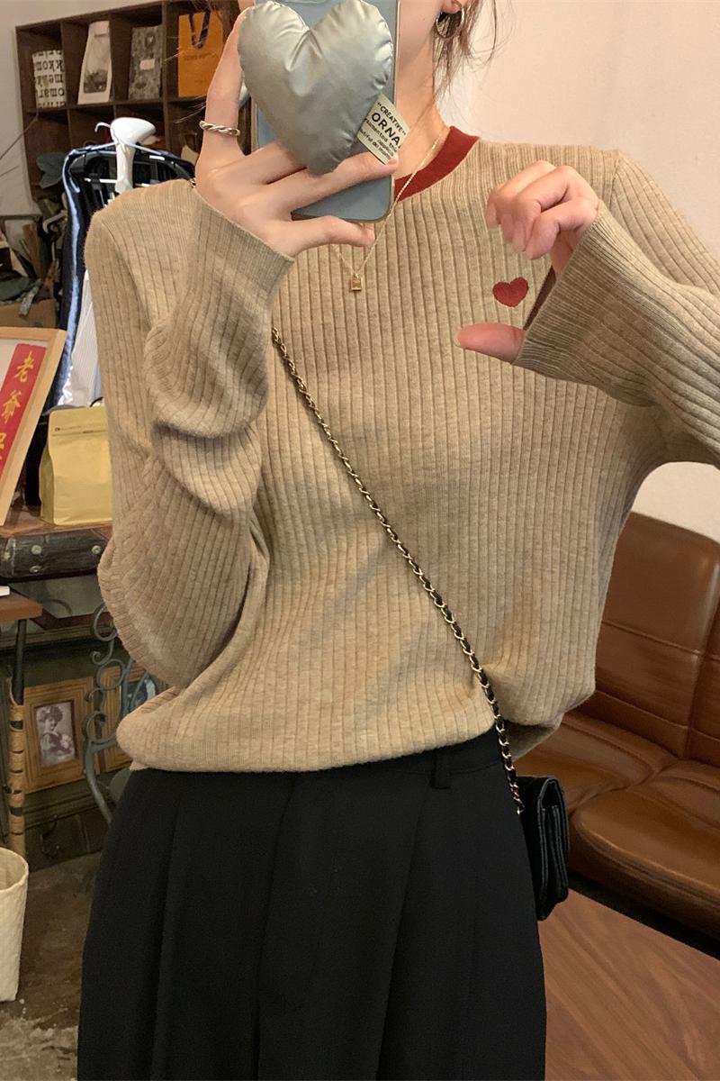 가을 겨울 라운드 목 바지의 짧은 스타일 다목적 단색 벨벳 내부 니트베이스 스웨터