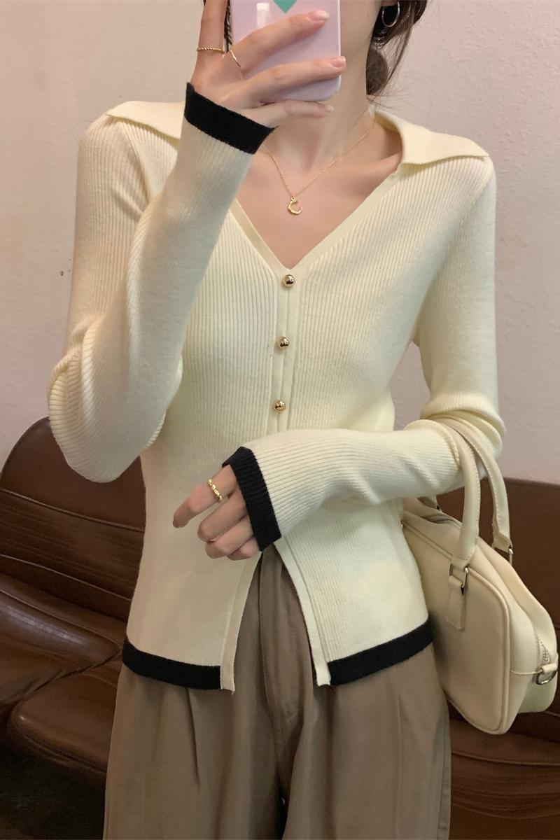 가을 및 겨울 한국 스타일 슬림 한 컬러 블로킹 폴로 칼라는 슬림 한 북극 벨벳 기질을 보이게하고 니트 여성 스웨터 내부