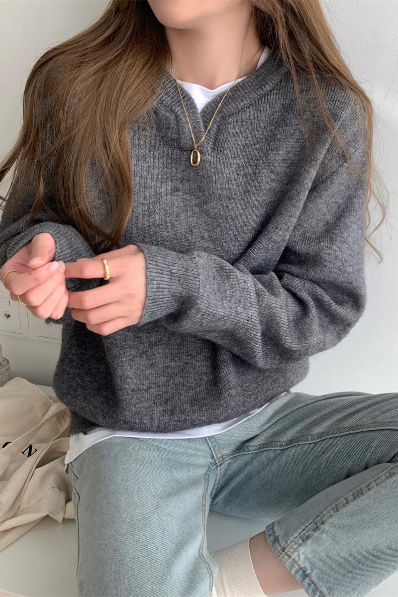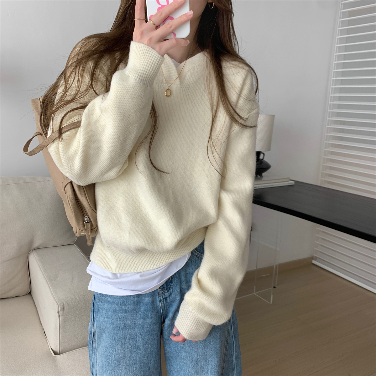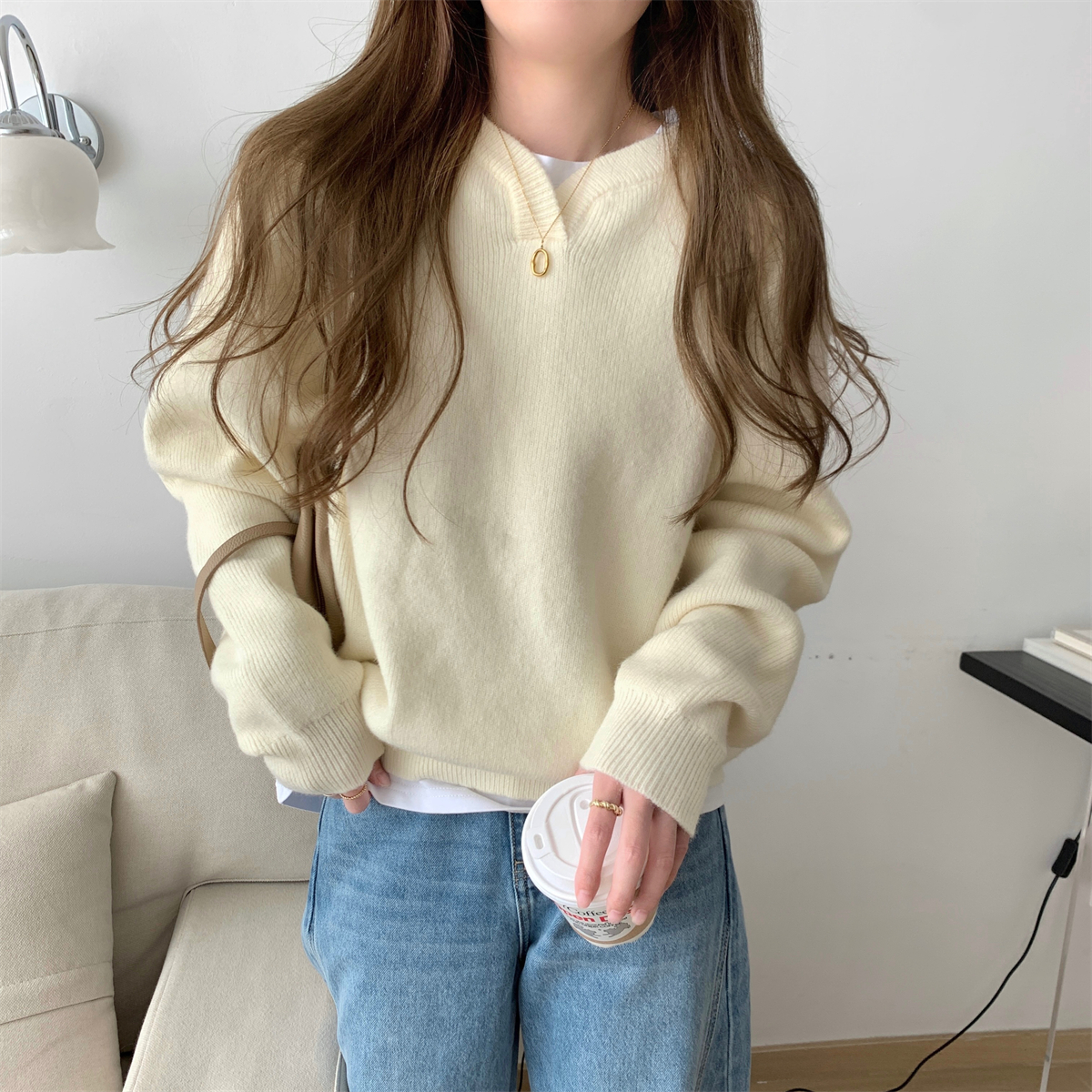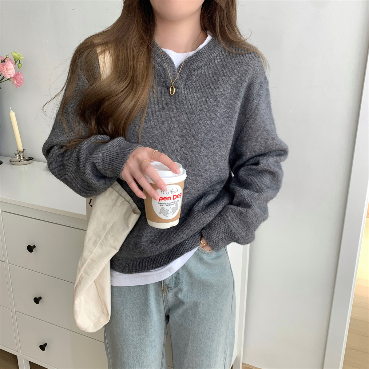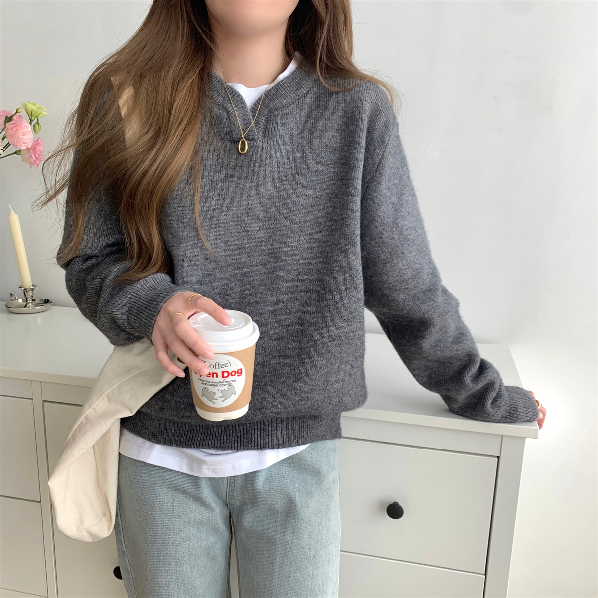 가을 및 겨울 한국 스타일 폴로 칼라 피트 스트립 독특한 플레어 슬리브 및 앤디 벨벳 니트 스웨터