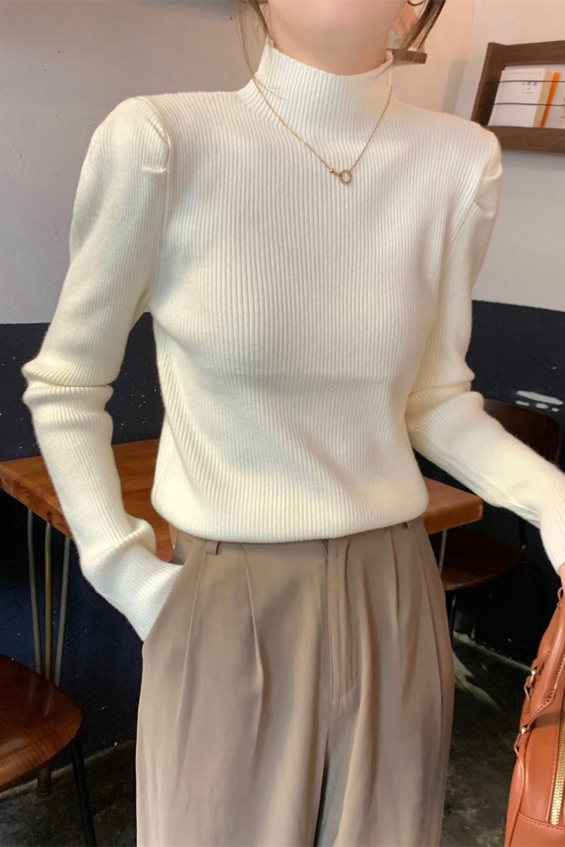 가을 및 겨울 다목적 슬림 어깨 대비 디자인 여성을위한 내부 니트베이스 스웨터